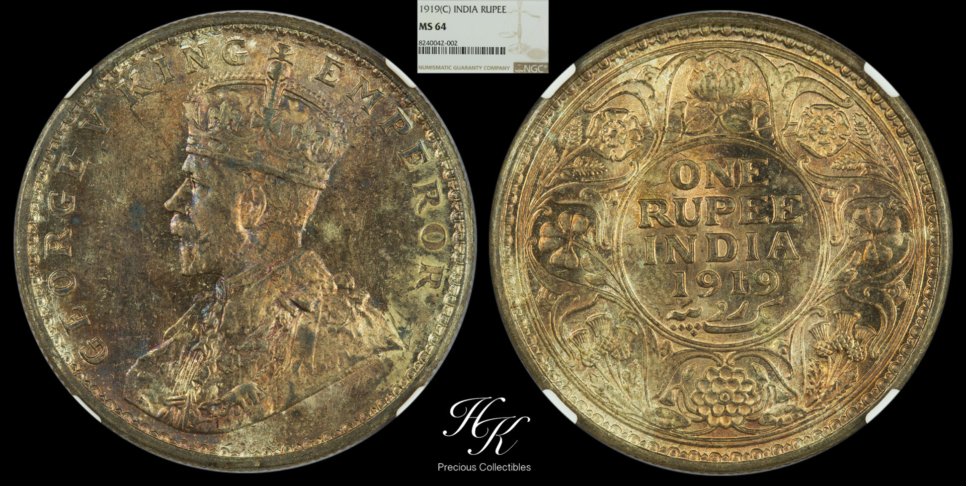 Ασημένια Ρουπία “Γεώργιος 5ος” – 1919 NGC MS64 British India
