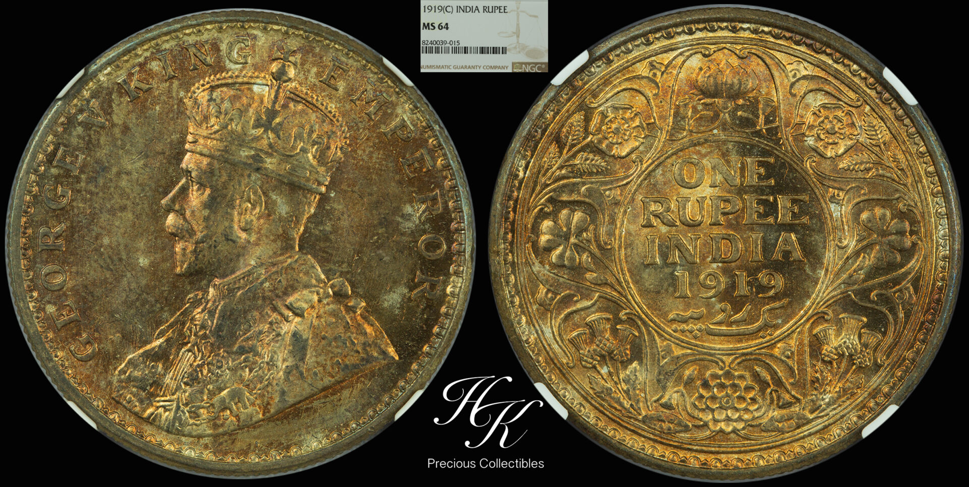 3. Ασημένια Ρουπία – Γεώργιος 5ος – 1919 NGC MS64 British India
