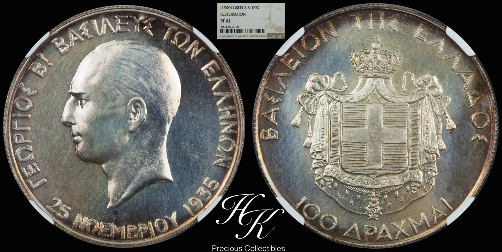 Ασημένιο Προυφ 100 Δραχμές 1935 (1940) “Γεώργιος 2ος” NGC PF62 Ελλάδα
