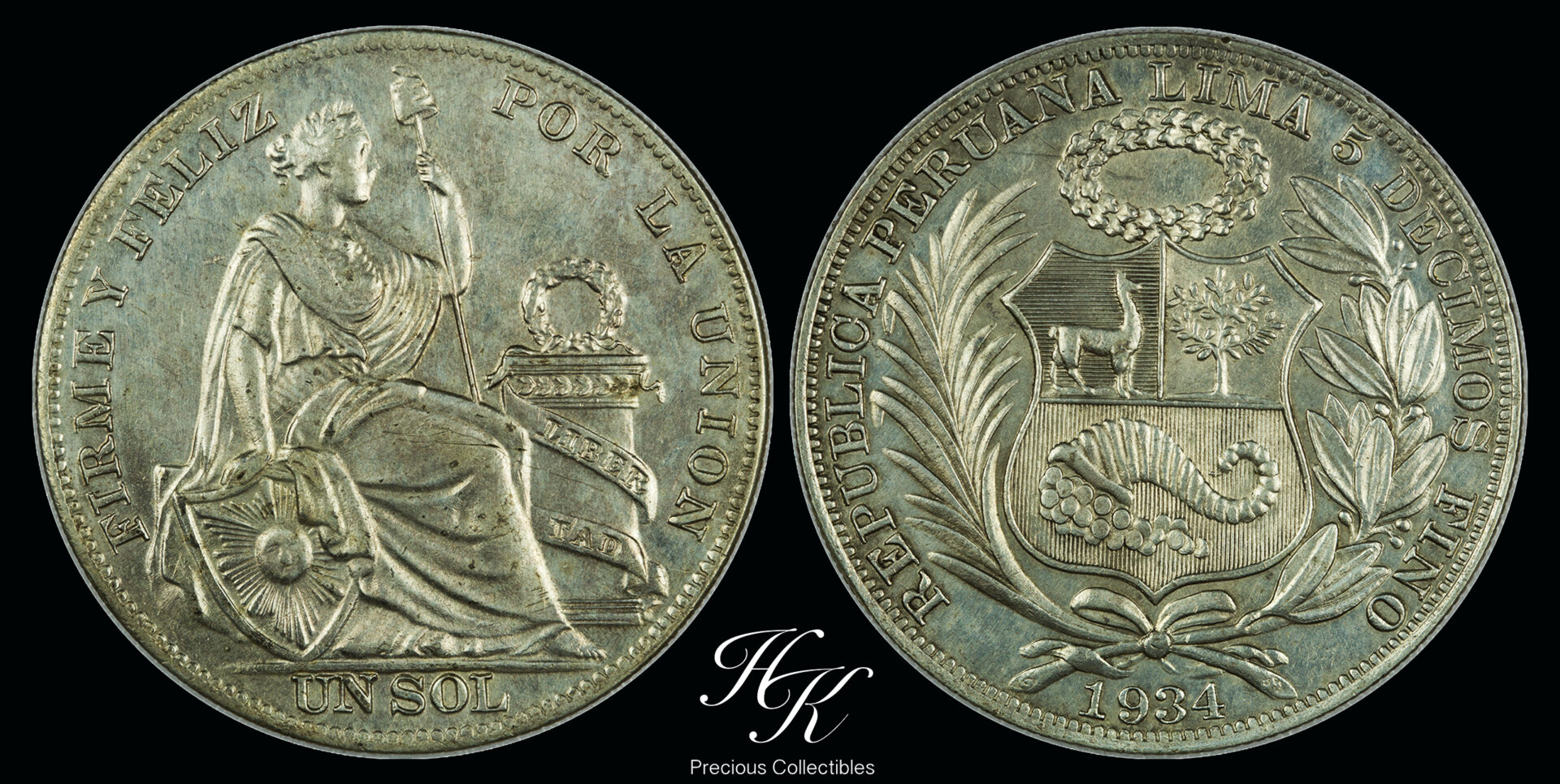 Ασημένιο 1 Σολ 1934 Περού Κατηγορίες: Ασημένια νομίσματα, Όλα τα νομίσματα Περιγραφή Επιπρόσθετες Πληροφορίες Περιγραφή UNC CONDITION Επιπρόσθετες Πληροφορίες Χώρα Περού Nominal 1 sol Year 1934 Quality UNC