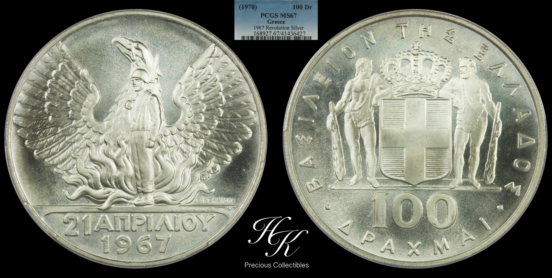 Ασημένιο 100 Δραχμές 1967 (1970) PCGS MS67 – Ελλάδα