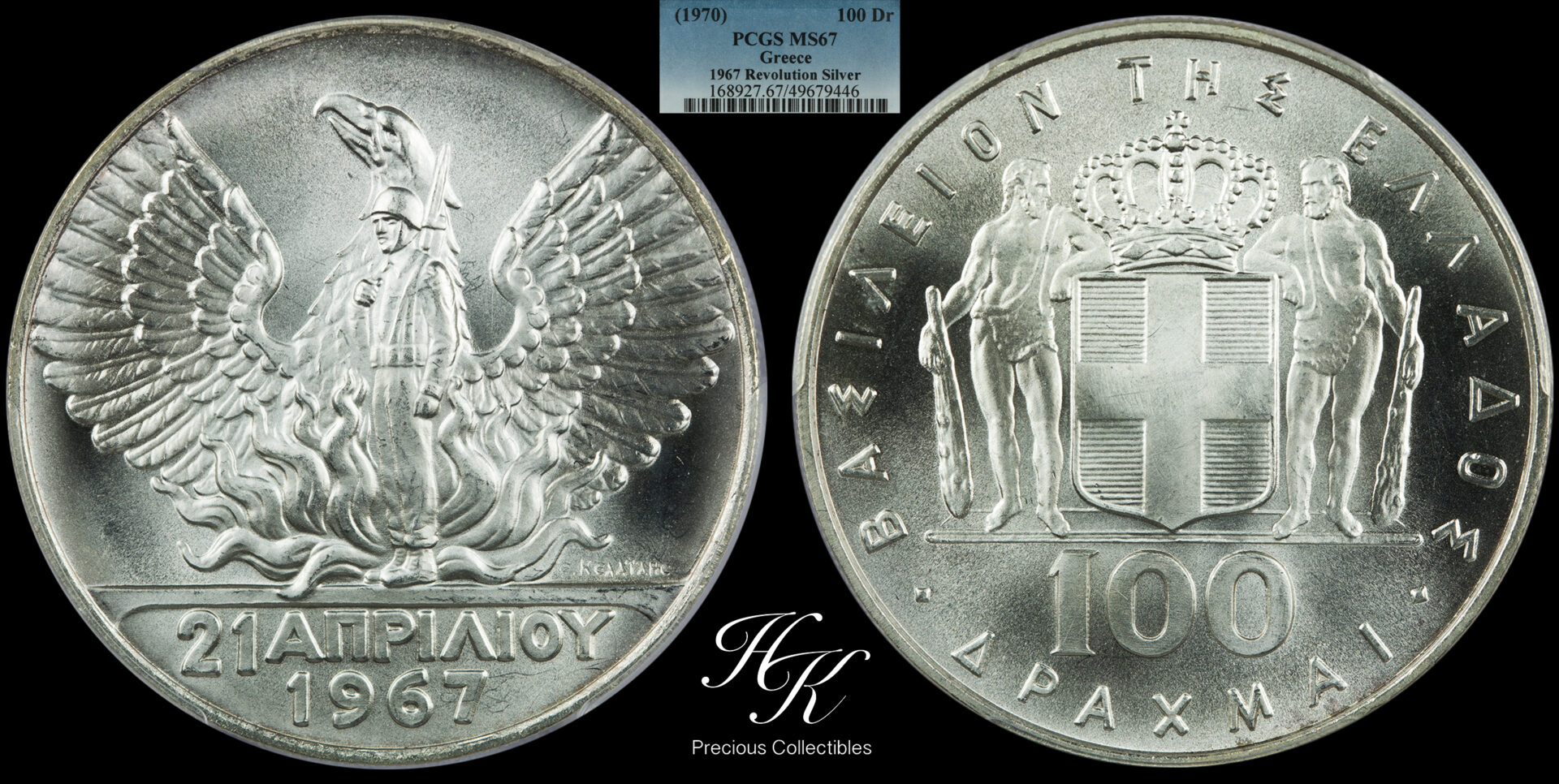 Ασημένιο 100 Δραχμές 1967 (1970) PCGS MS67 Ελλάδα