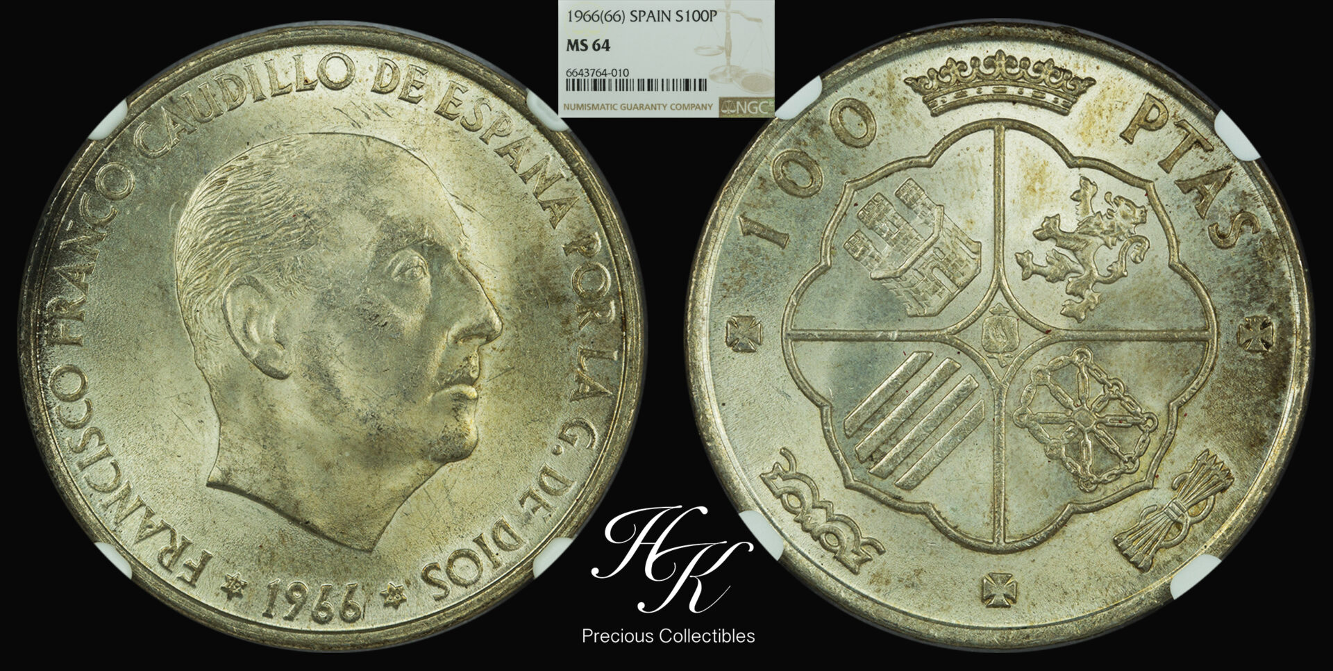 Ασημένιο 100 Πεσέτας 1966 – Francisco Franco- NGC MS64 Ισπανία
