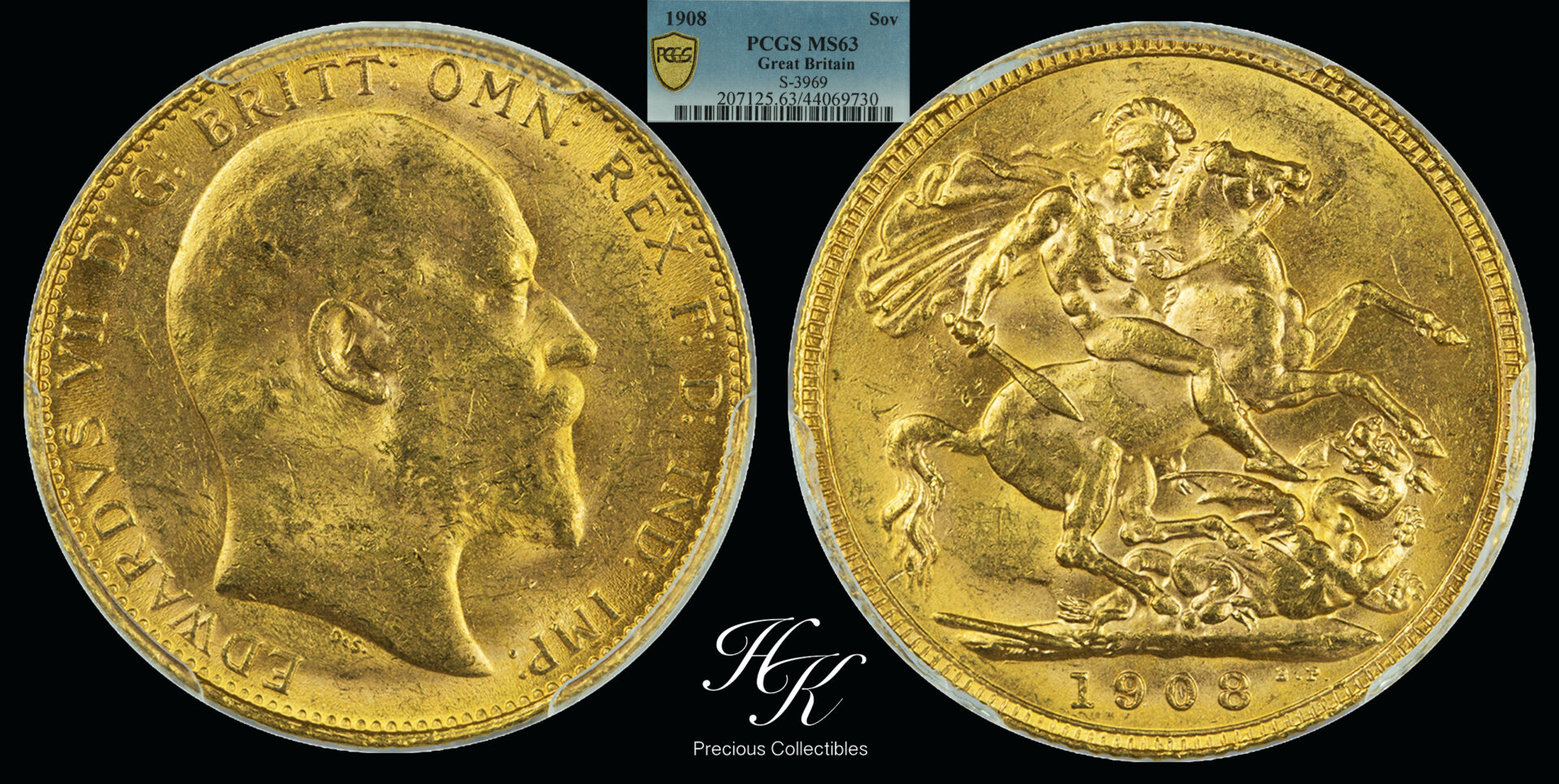 Χρυσή Λίρα 1908 PCGS MS63 “Εδουάρδος 7ος” Μεγάλη Βρετανία