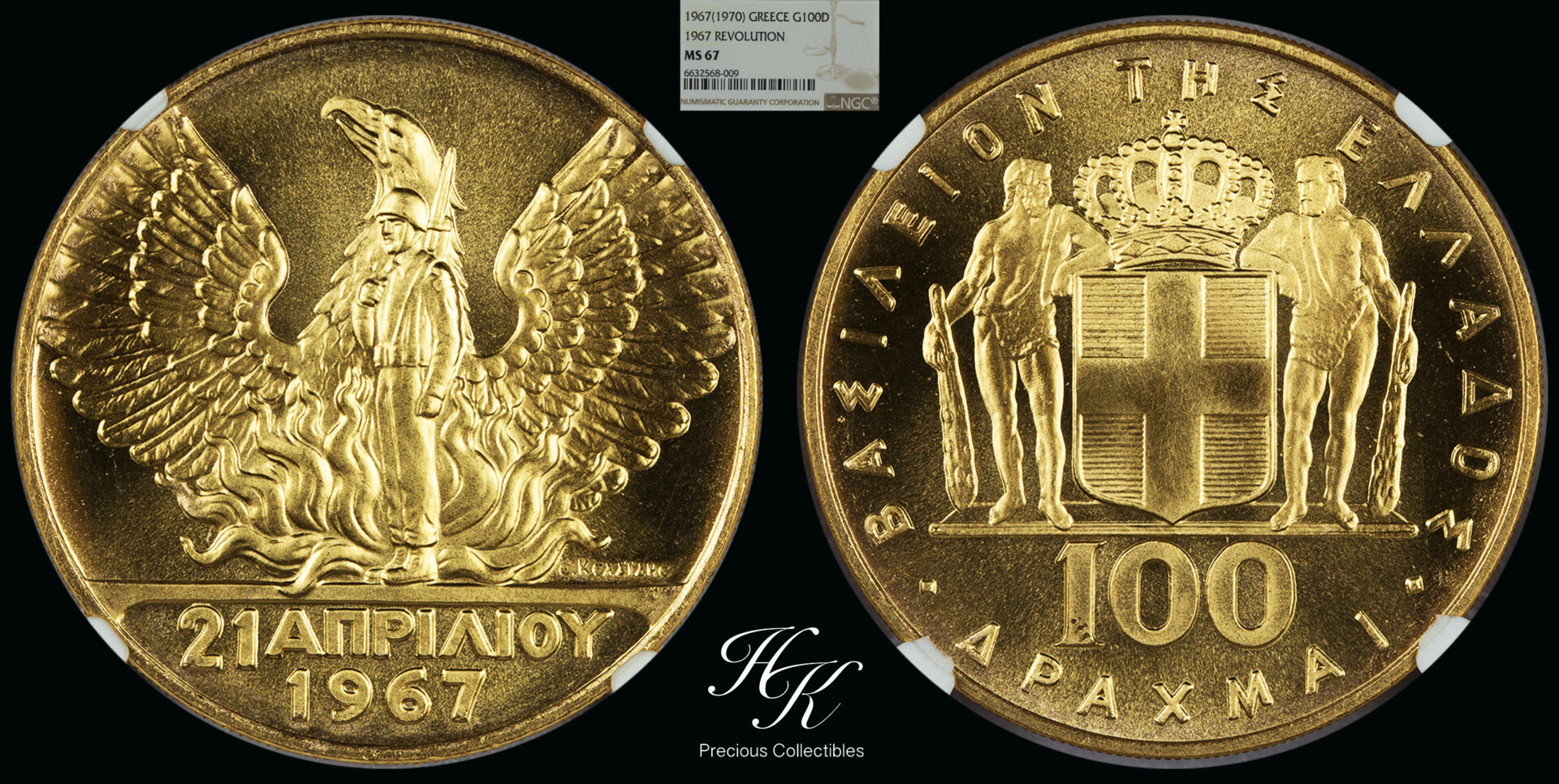 Χρυσό 100 Δραχμές 1967 (1970) NGC MS67 Ελλάδα