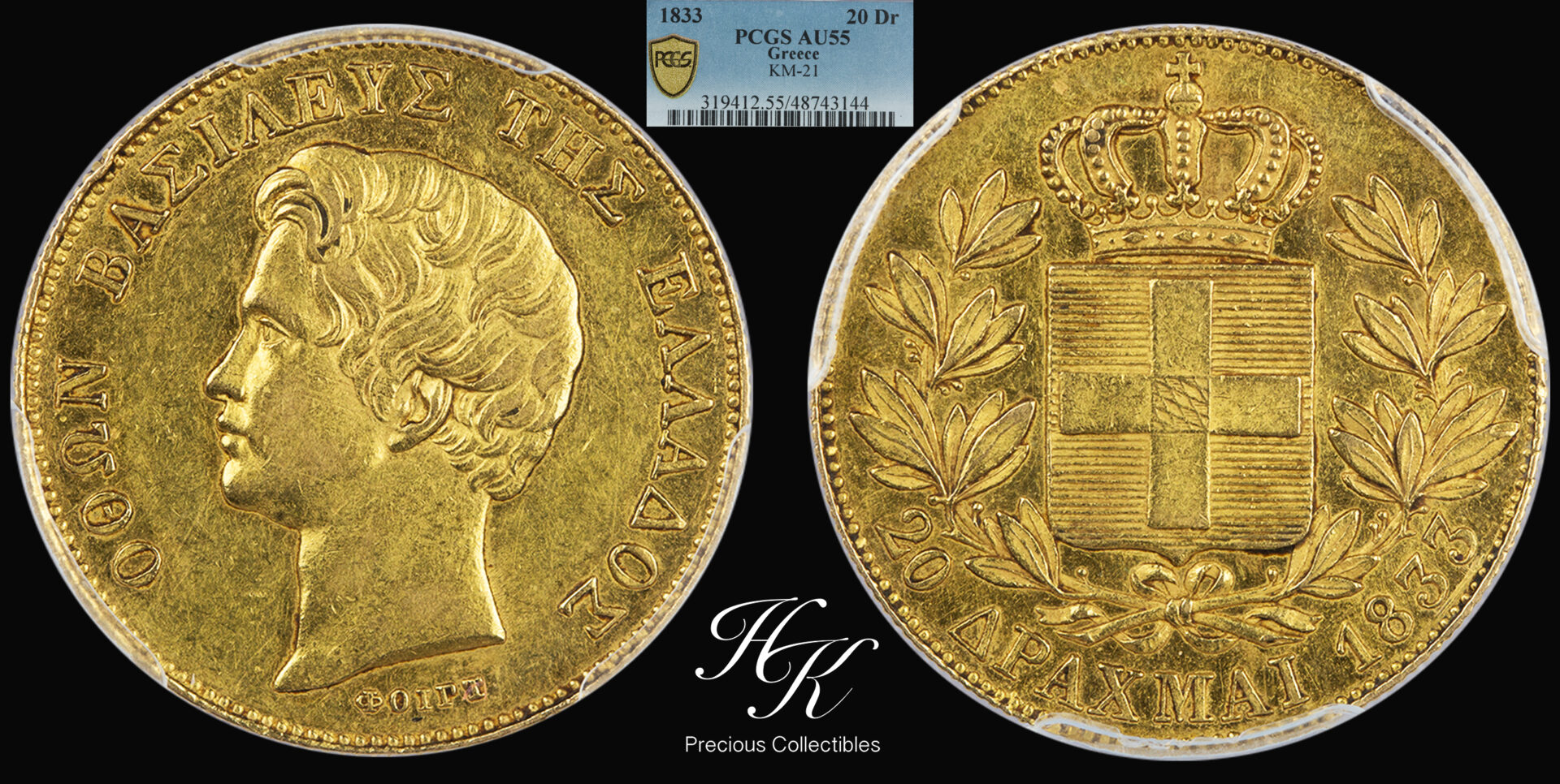 Χρυσό 20 Δραχμές 1833 Βασιλιάς Όθωνας PCGS AU55 – Ελλάδα