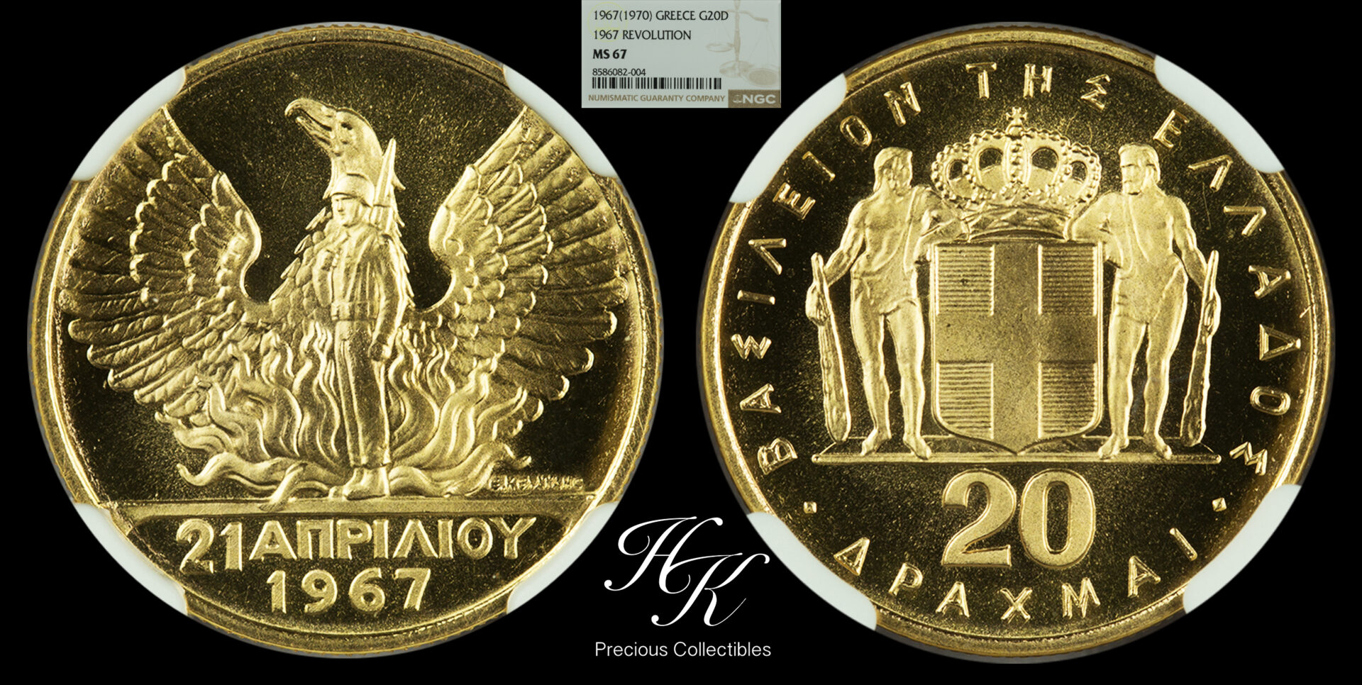 Χρυσό 20 Δραχμές 1967 (1970) NGC MS67 – Ελλάδα