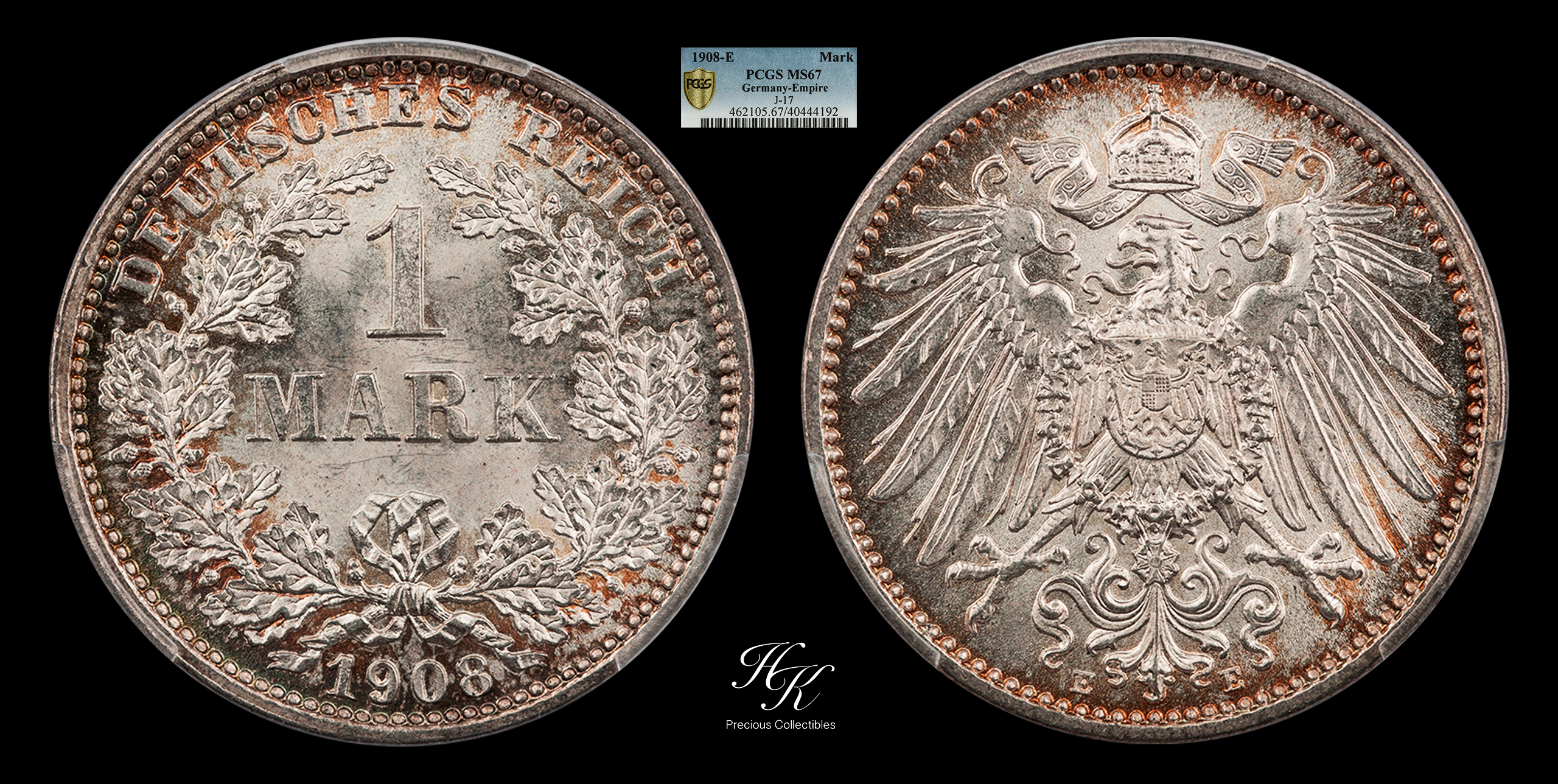 1 Mark 1908 E Wilhelm II PCGS MS67 TOP POP Germany