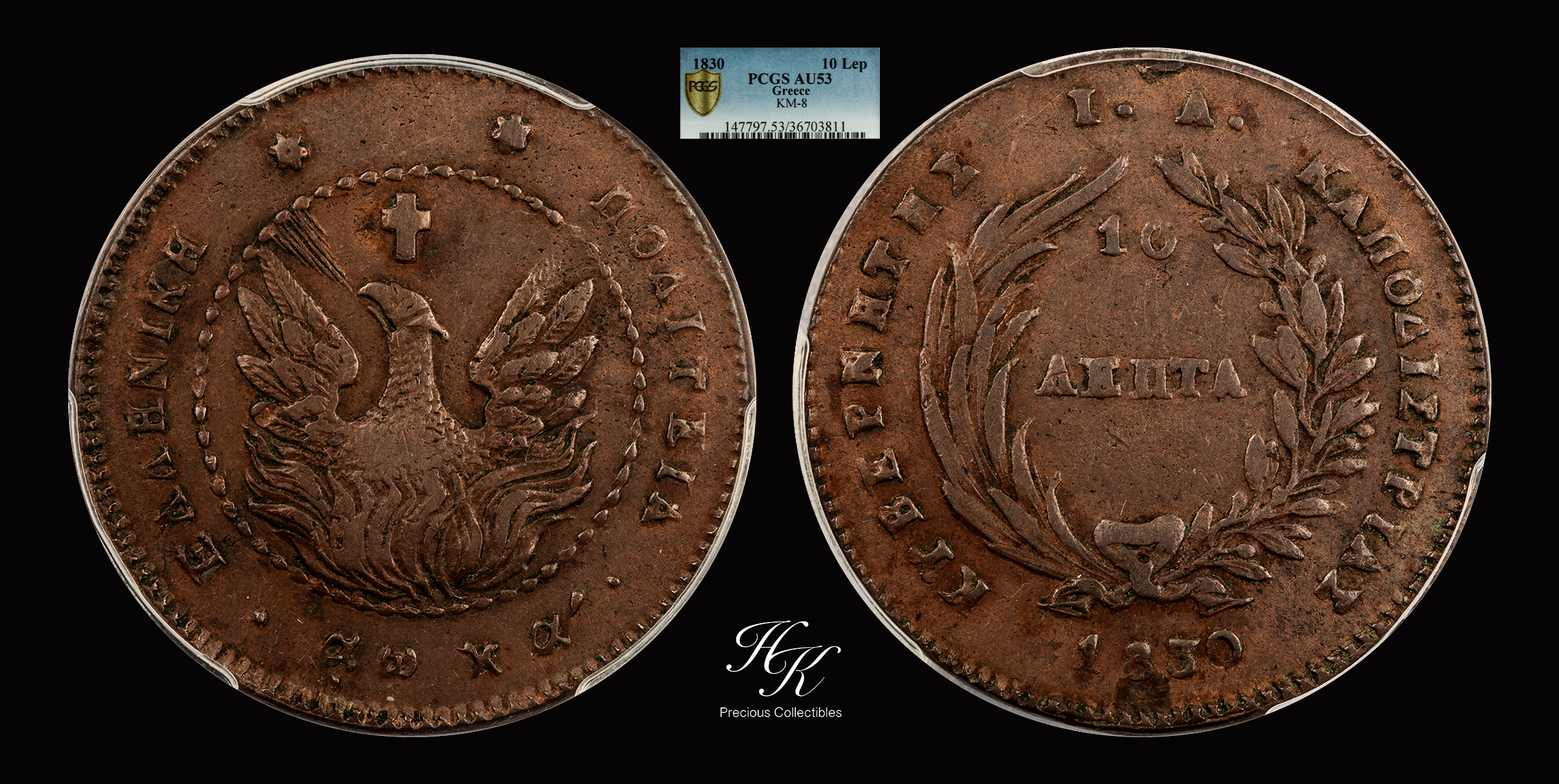 10 Lepta 1830 Variety 267 Governor Kapodistrias PCGS AU53 Greece Excessively Rare (RRRR)