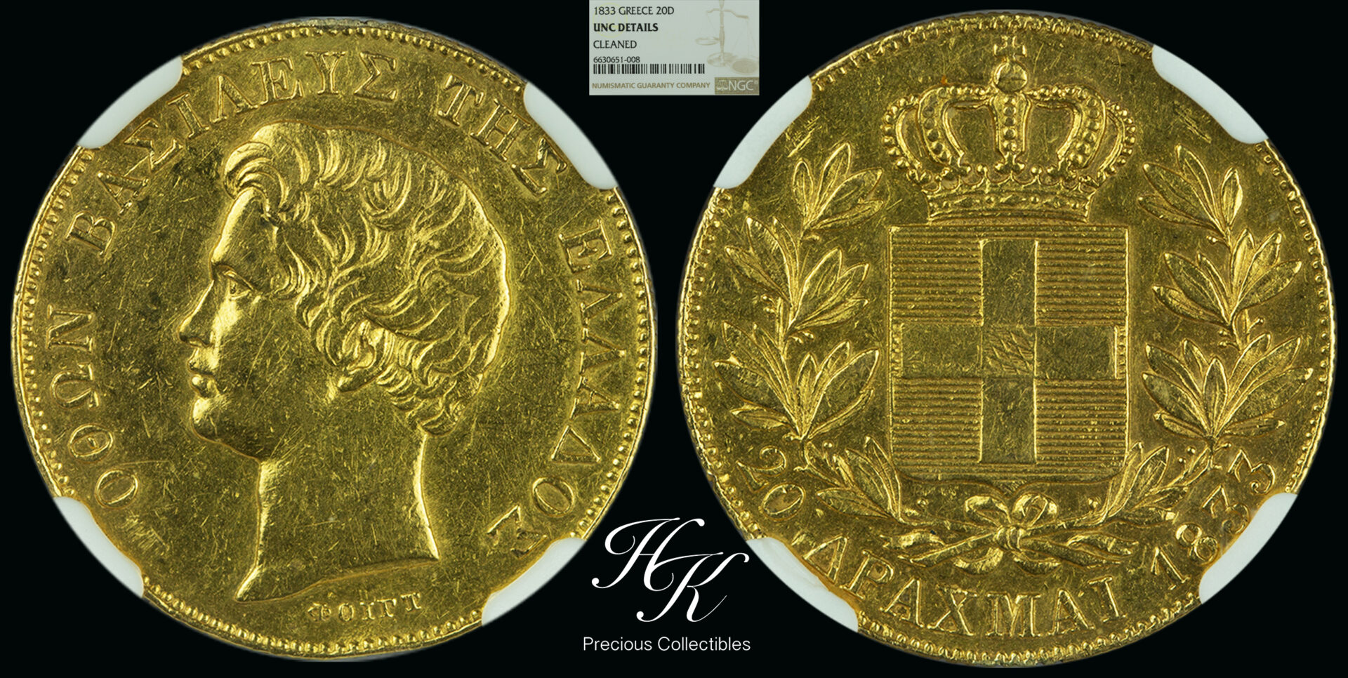 20 Δραχμές 1833 Βασιλιάς Όθωνας NGC UNC DETAILS cleaned “OTTO” Ελλάδα