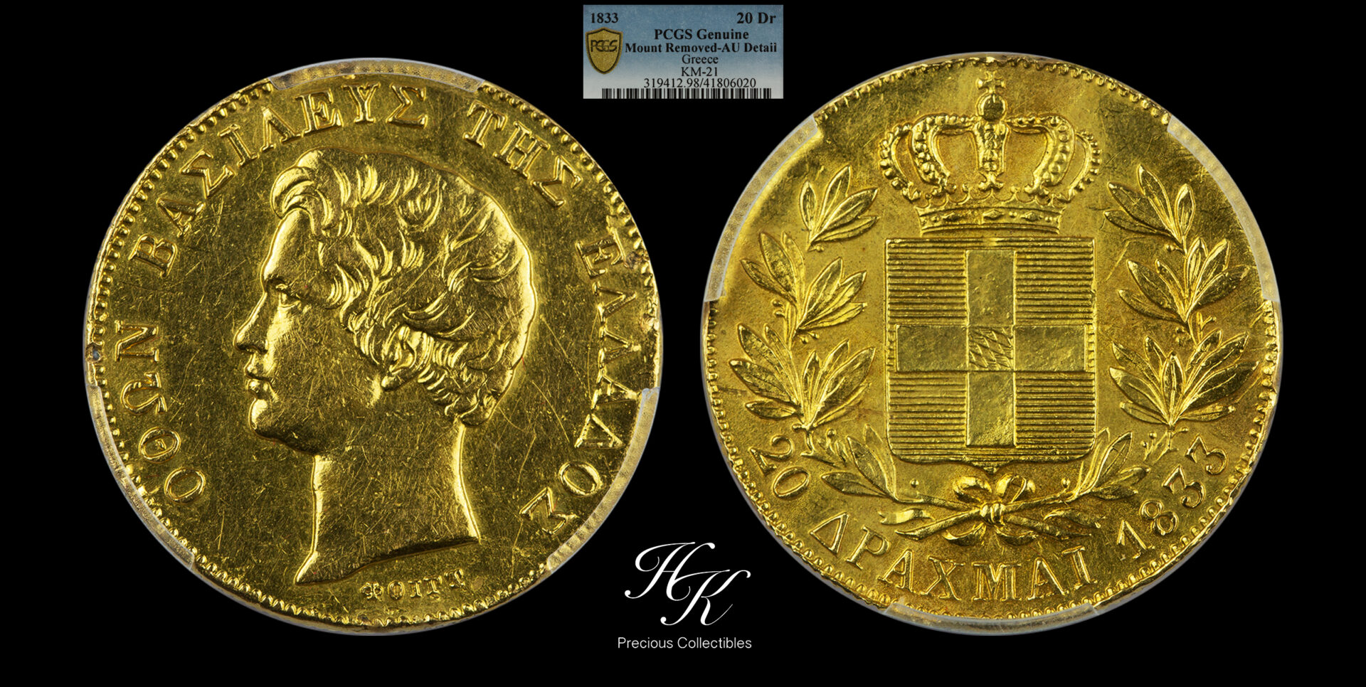 20 δραχμές 1833 Όθων PCGS AU DETAILS Ελλάδα