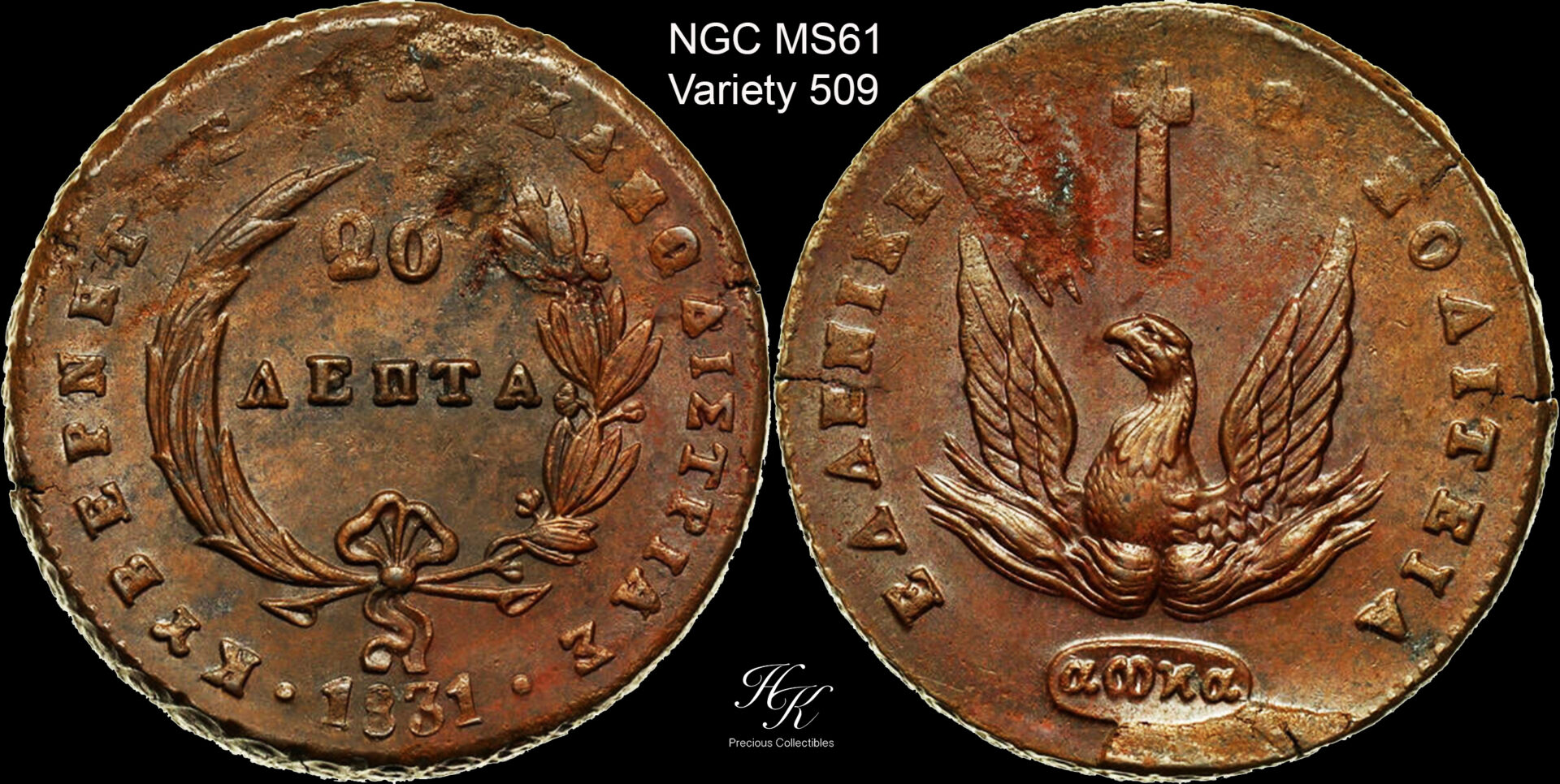 20 Λεπτά 1831 ” Κυβερνήτης Καποδίστριας ” NGC MS61 Ελλάδα