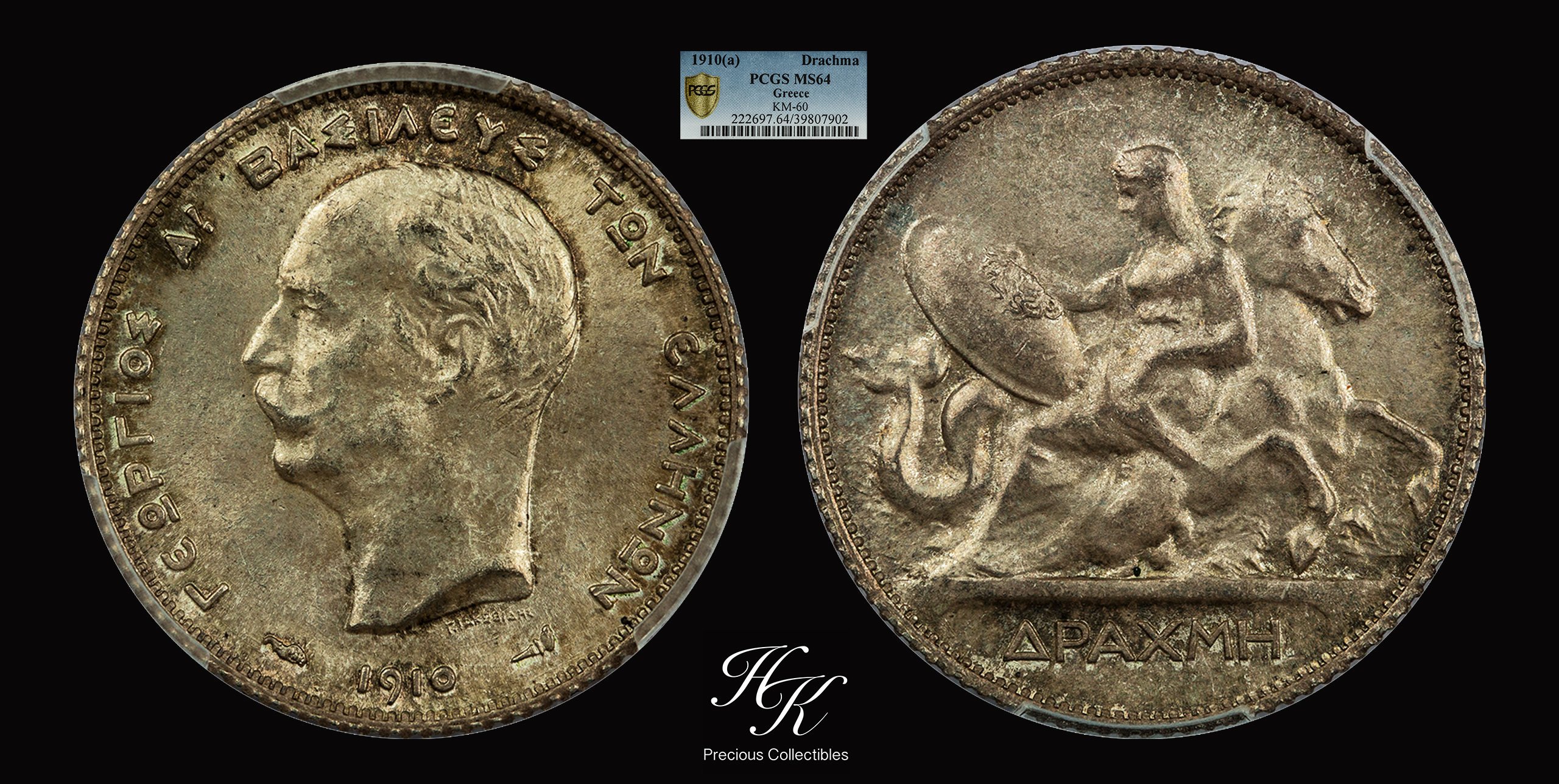 Drachma 1910 George A NGC MS64 Greece Κατηγορίες: Ασημένια νομίσματα, Όλα τα νομίσματα Περιγραφή Επιπρόσθετες Πληροφορίες Περιγραφή Drachma 1910 George A NGC MS64 Greece Great eye appeal – scarce grade ! Επιπρόσθετες Πληροφορίες Χώρα Ελλάδα