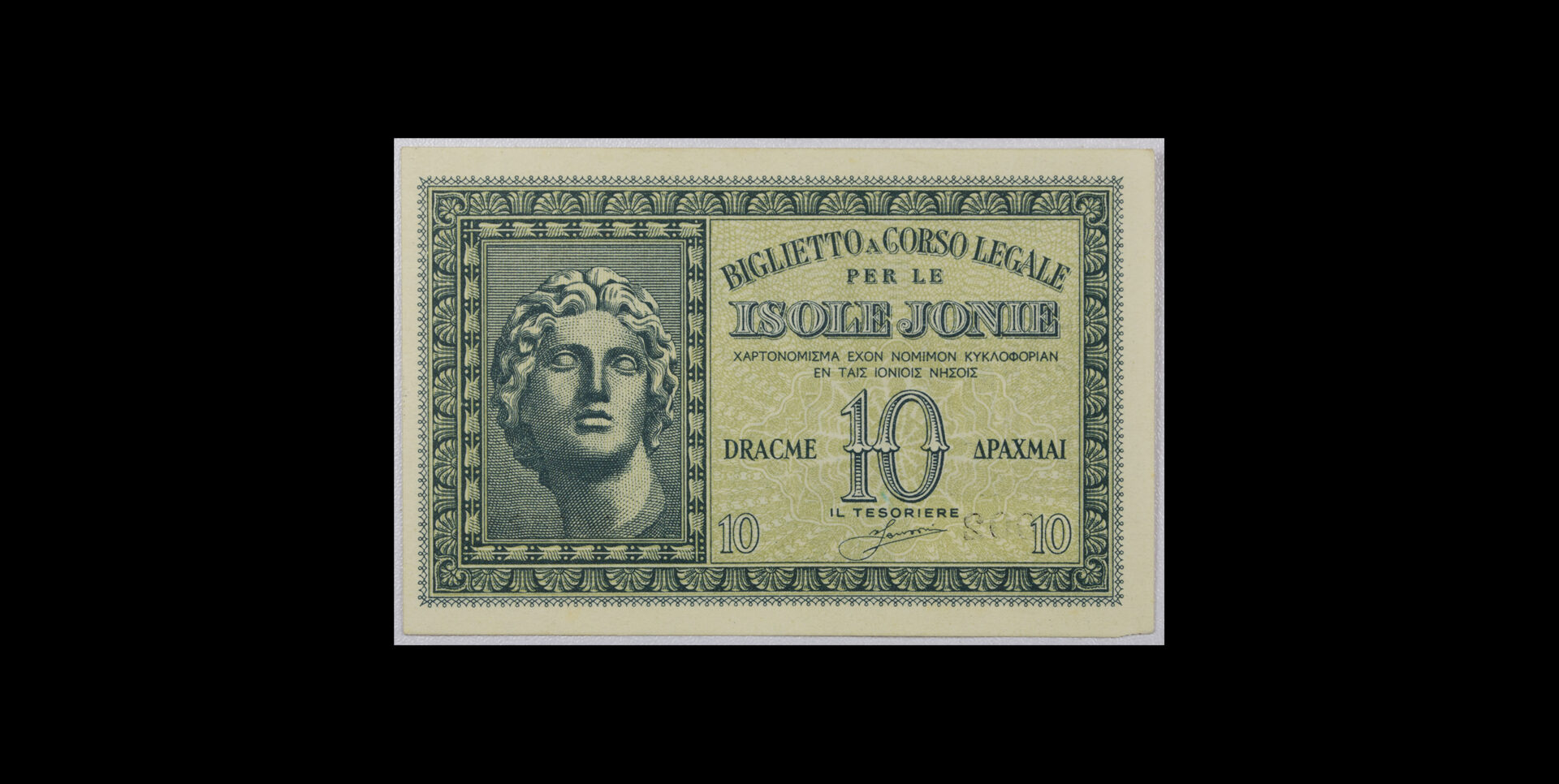 10 δραχμές 1941 Ιόνιο – Isole Jonie- Ελλάδα Κατηγορία: Χαρτονομίσματα Περιγραφή Επιπρόσθετες Πληροφορίες Περιγραφή 10 δραχμές 1941 Ιόνιο – Isole Jonie- Ελλάδα εξαιρετική κατάσταση Επιπρόσθετες Πληροφορίες Χώρα Ελλάδα