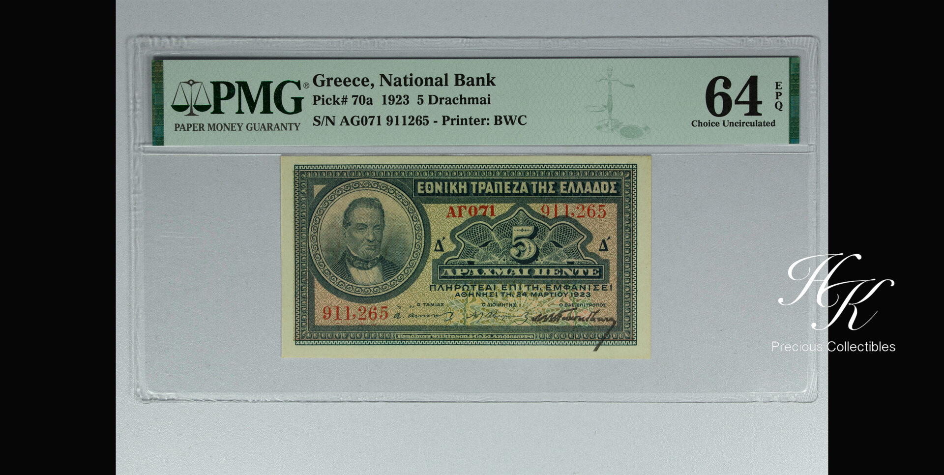 5 ΔΡΑΧΜΕΣ ΕΘΝΙΚΗ ΤΡΑΠΕΖΑ 1923 PICK 70a PMG64 EPQ Ελλάδα