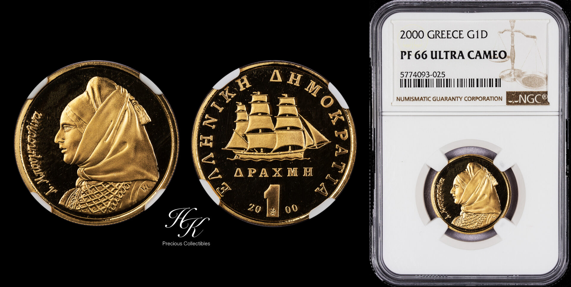 1 Drachma 2000 Proof gold coin “Bouboulina” NGC PF66 ULTRA CAMEO Greece