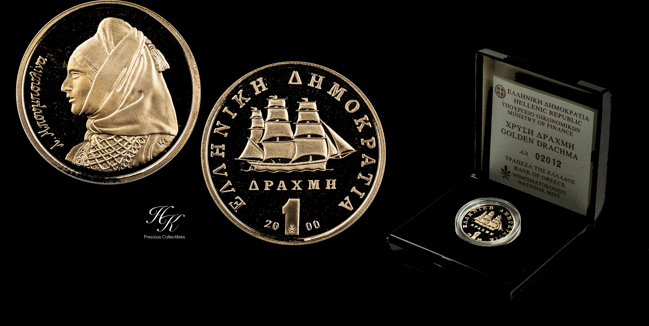 1 Gold Drachma coin 2000 Bouboulina Greece