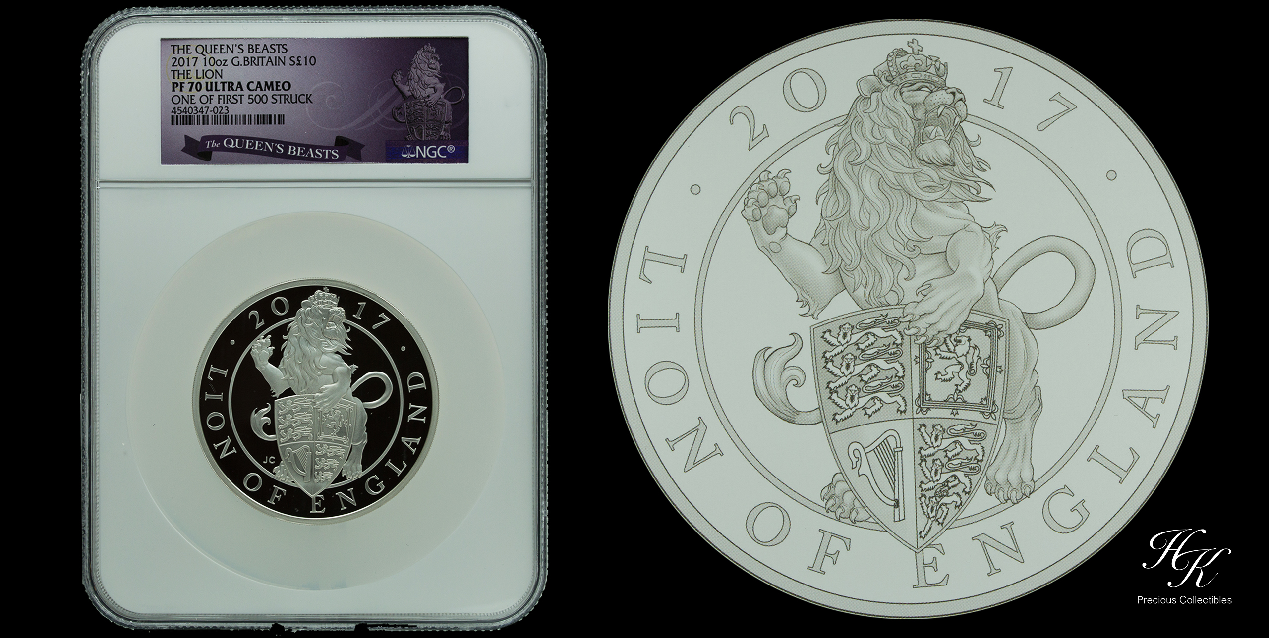 10 Pounds 2017 10 oz silver “The Queen’s Beasts – The Lion Of England” NGC PF70 ULTRA CAMEO Great Britain