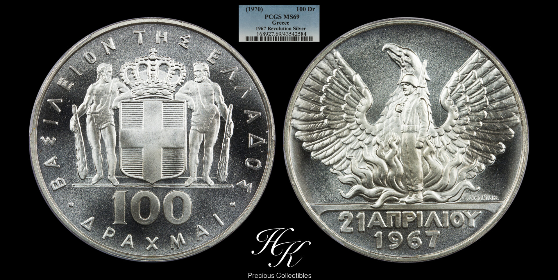 3. 100 drachmai 1967 (1970) PCGS MS69 Greece