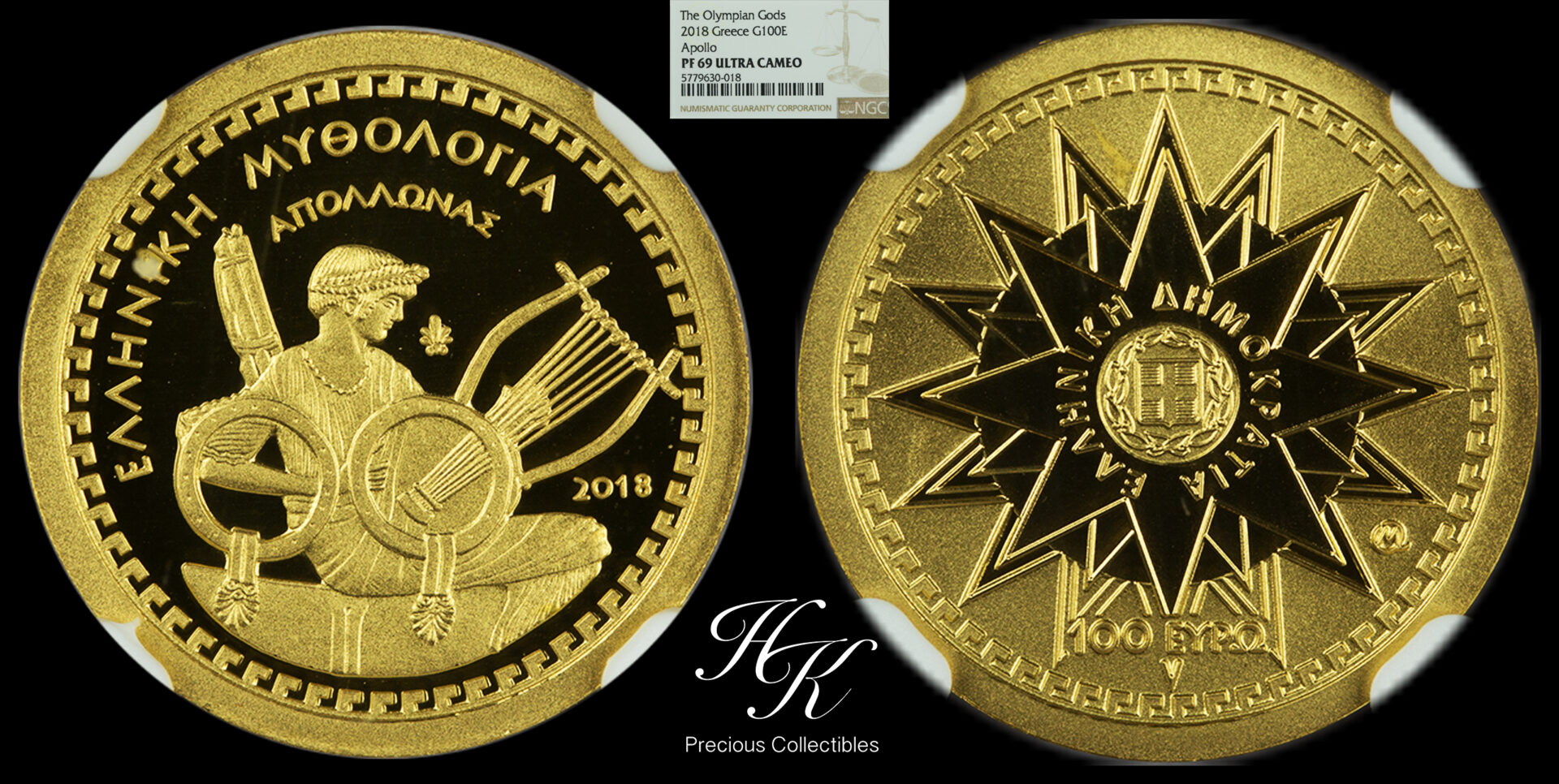 100 euros 2018 gold proof coin “Apollo” NGC PF69 ULTRA CAMEO Greece