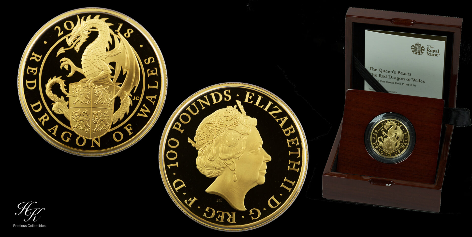 100 Pounds 2018 Proof Queen’s Beast The Dragon Of Wales 1 oz Great Britain