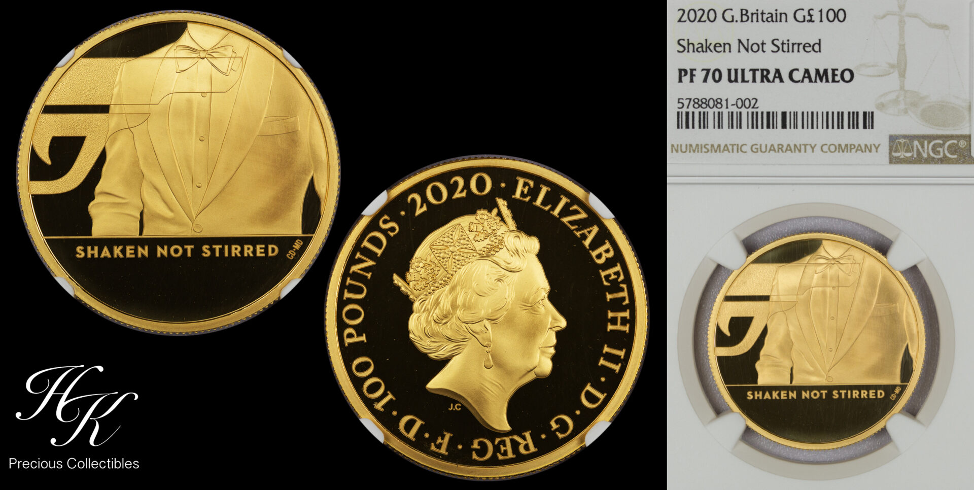 100 Pounds 2020 Proof Gold James Bond 3rd coin “Shaken not Stirred” NGC PF70UCAM Great Britain