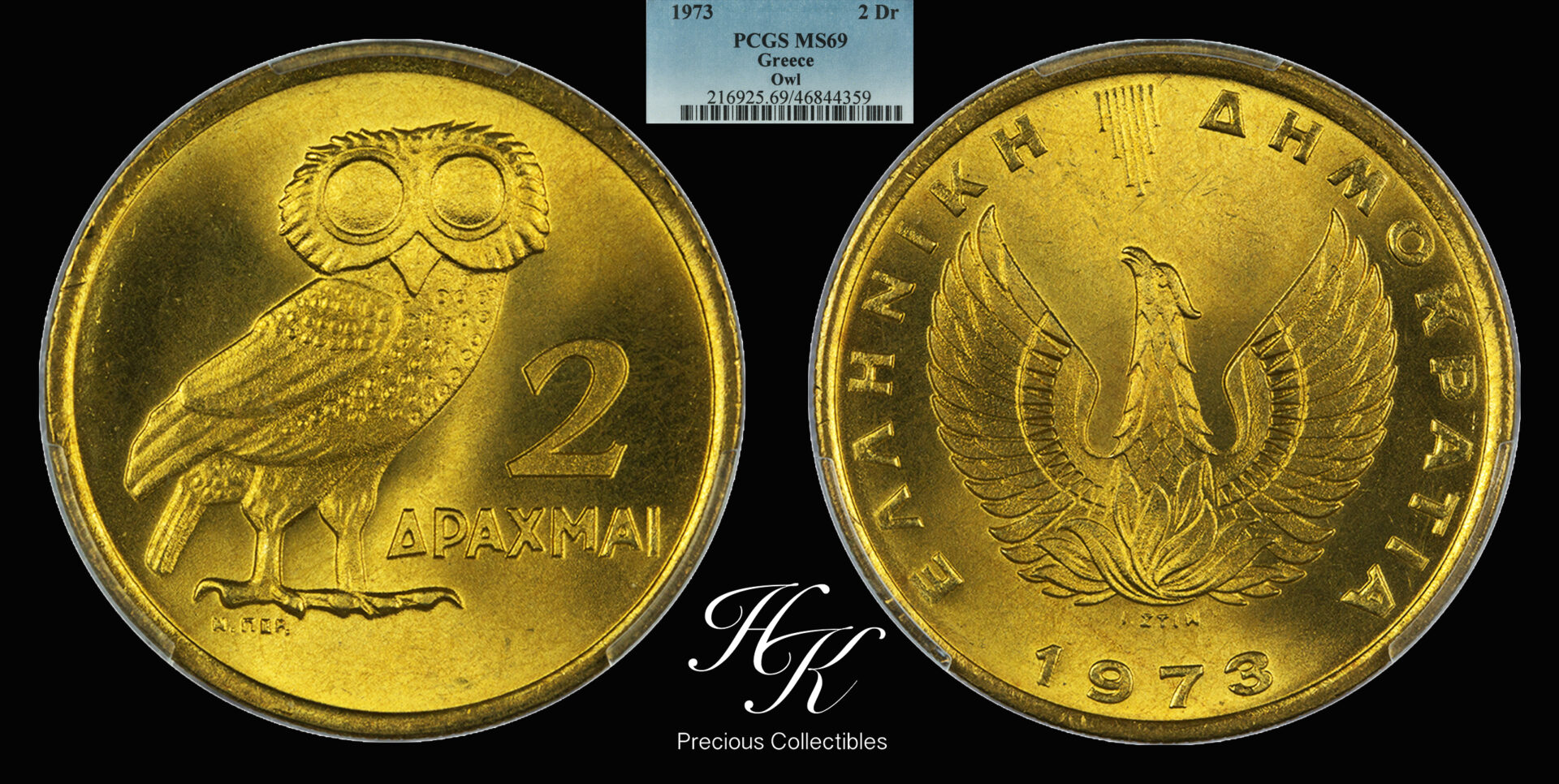 2 Drachmai 1972 “OWL” PCGS MS69 Greece
