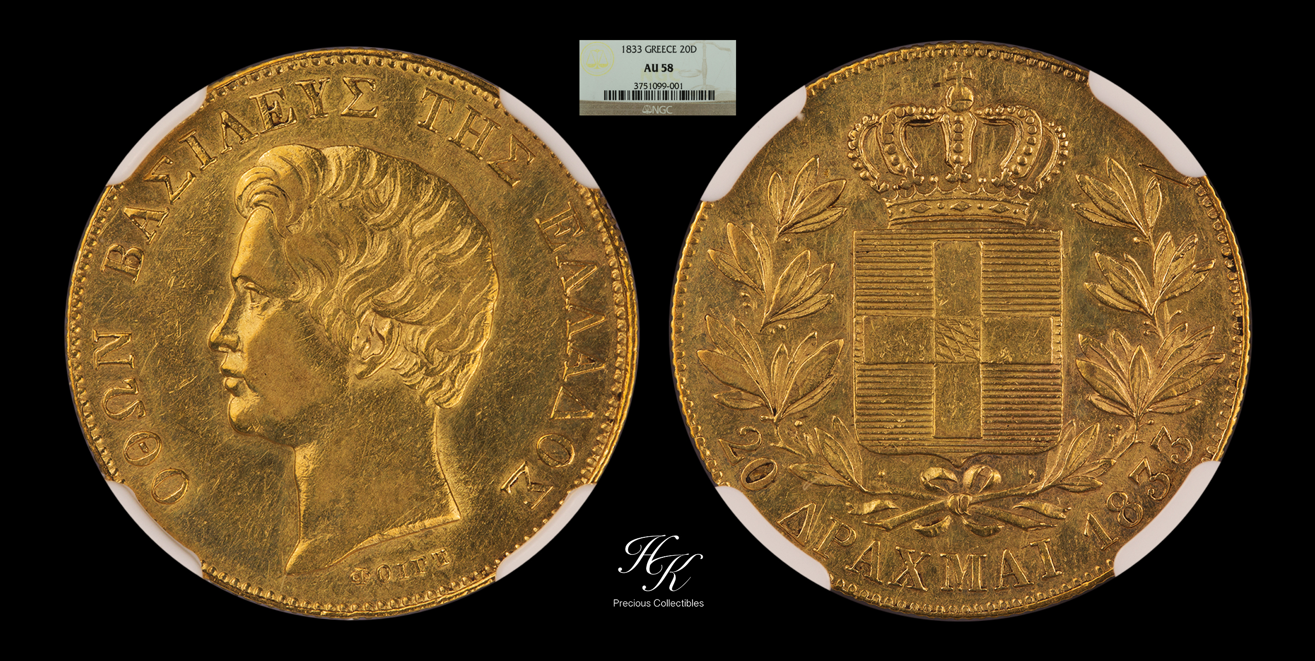 20 drachmai 1833 King Othon NGC AU58 Greece