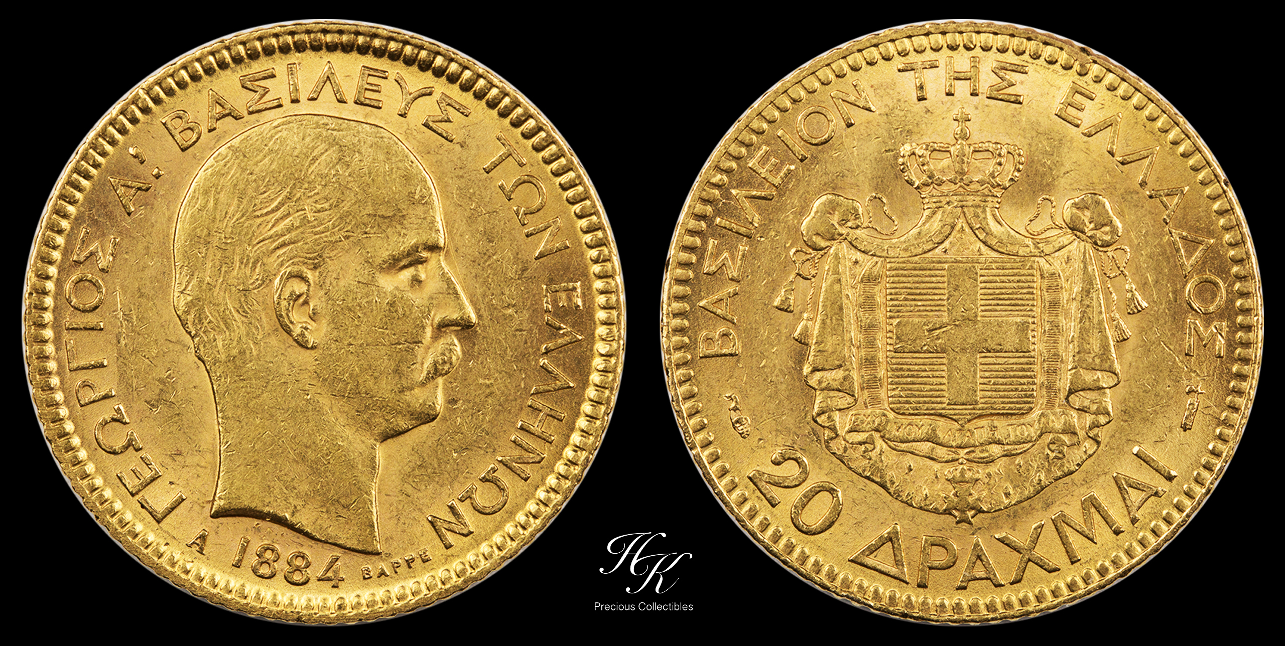 20 Drachmai gold 1884 A (King George A ) Greece