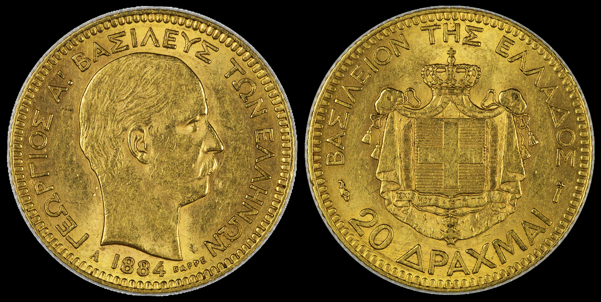 20 Drachmai 1884 “King George A” UNC Greece