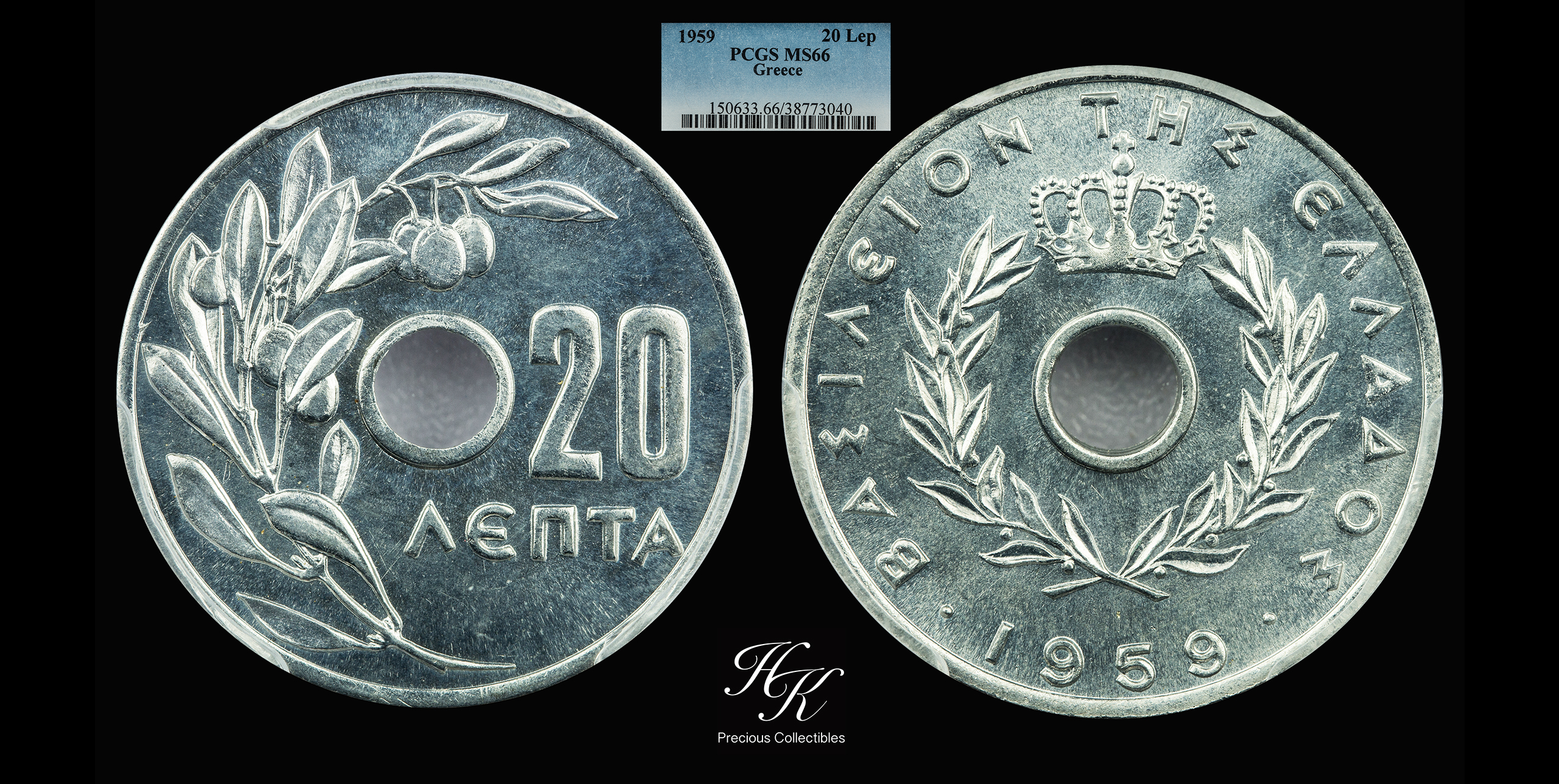 20 Lepta 1959 Paul A PCGS MS66 Categories: All Coins, Copper-Nickel coins Description Additional information Description 20 Lepta 1959 Paul A PCGS MS66 Additional information Country Greece