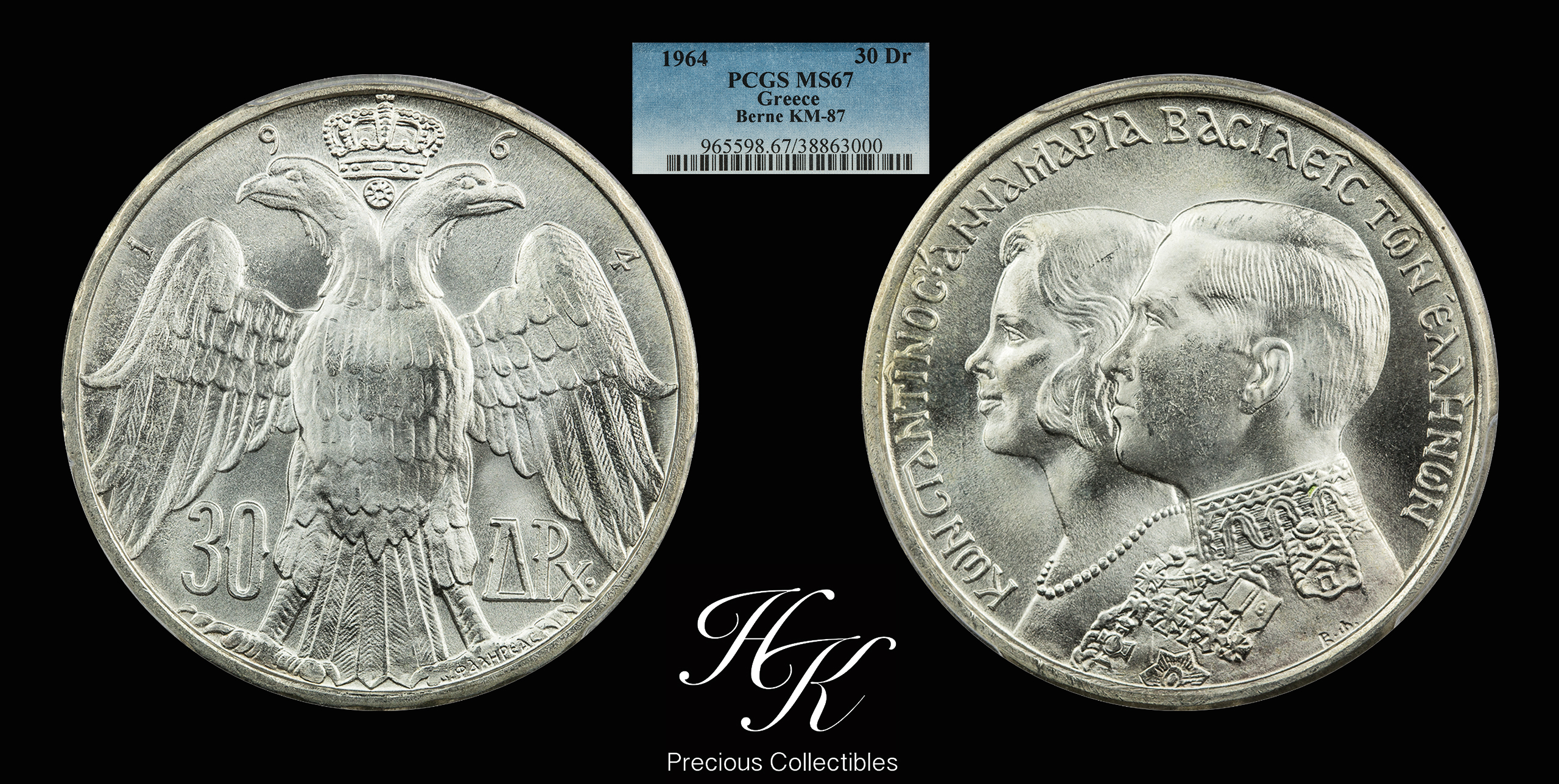 3. 30 Drachmai 1964 Berne PCGS MS67 TOP Greece