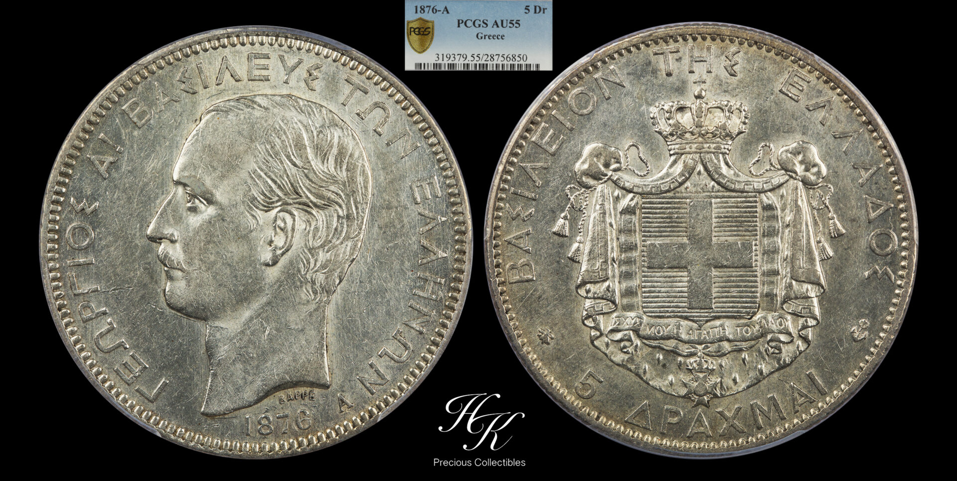 5 Drachmai 1876 King George A PCGS AU55 Greece