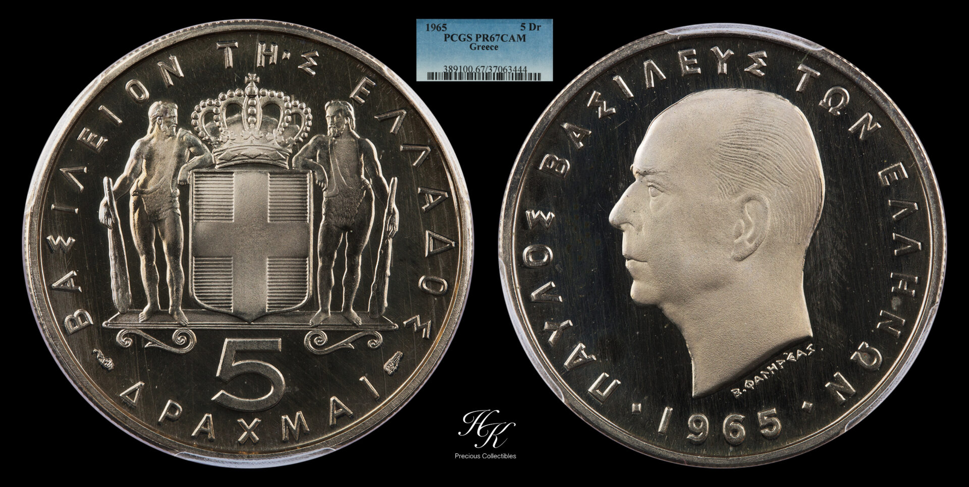3. 5 Drachmai 1965 King Paul PCGS PR67 Cameo Greece