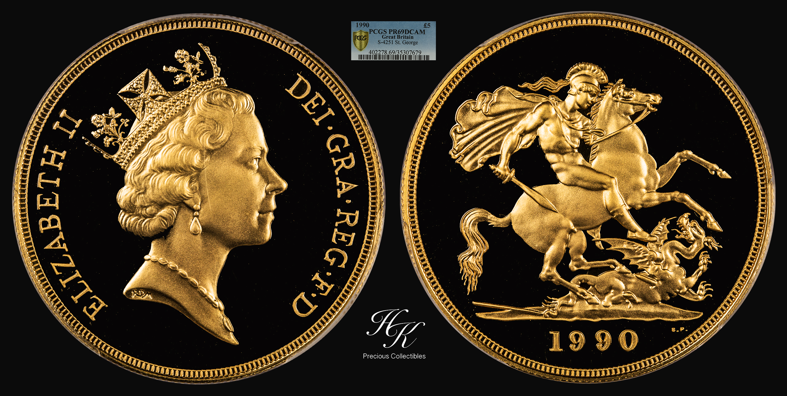 5 Pound 1990 Proof quintuple sovereign PR69 Deep Cameo Elizabeth Great Britain