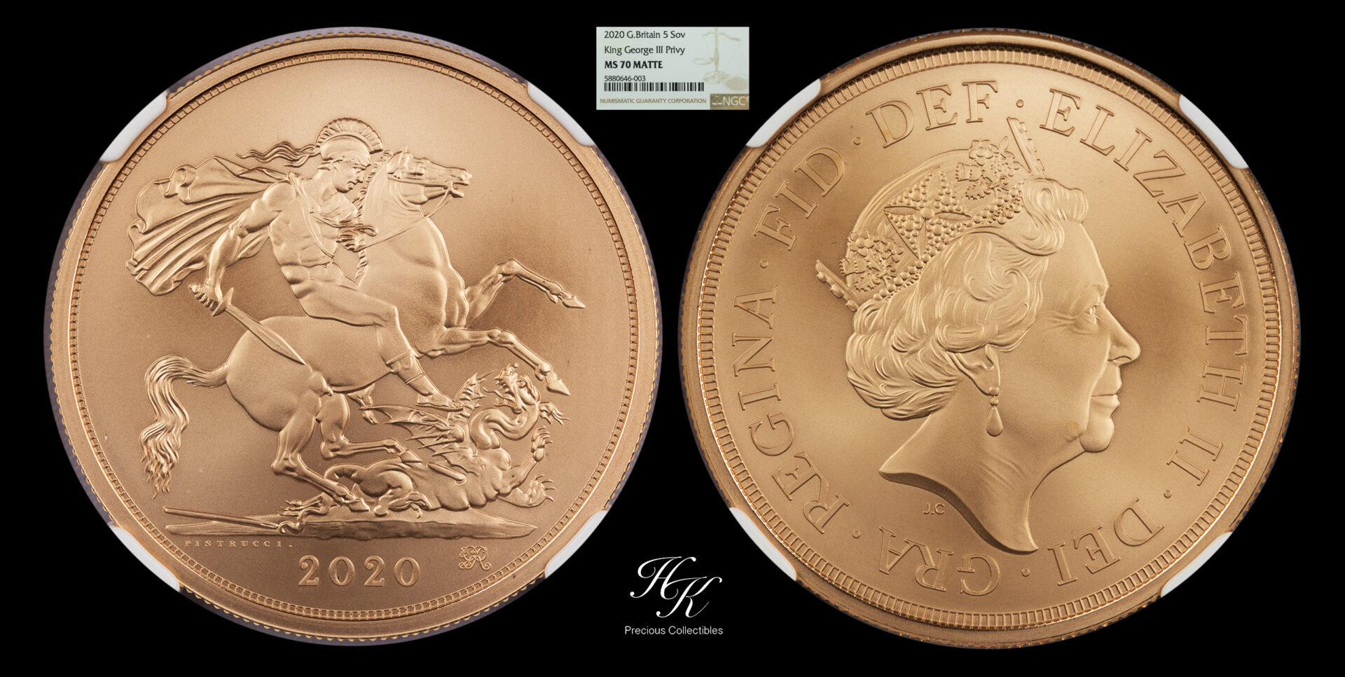 5 Pound 2020 MATTE quintuple sovereign “Elizabeth” NGC MS70 Great Britain