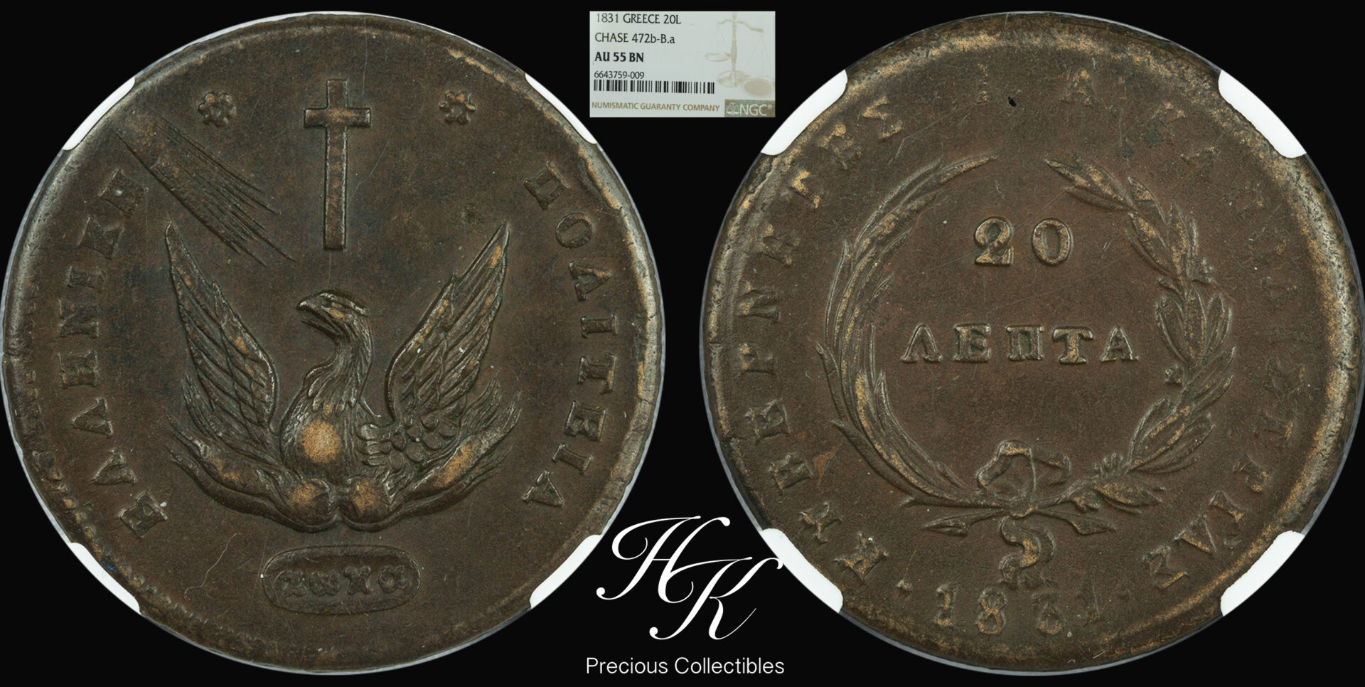 Copper 20 lepta 1831 “Kapodistrias” RARE variety 472b Greece