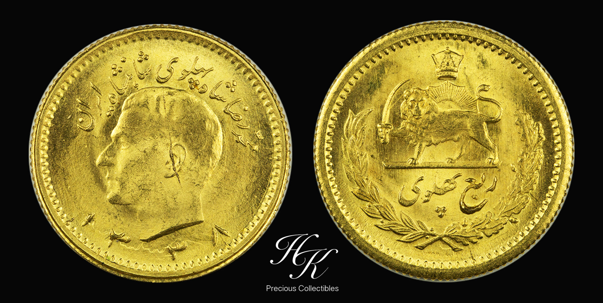 Gold 1/4 (quarter) Pahlavī – Mohammad Rezā Pahlavī 1959 (1338) Iran