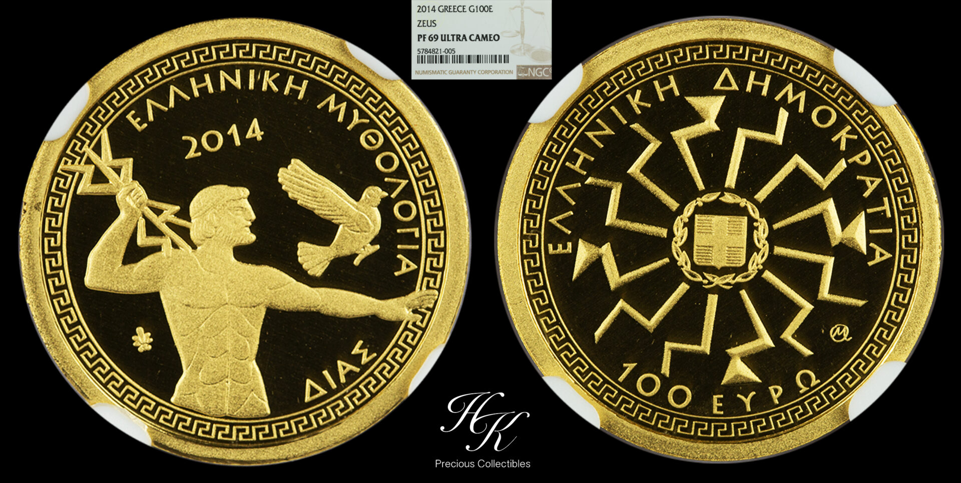Gold 100 euros 2014 “ZEUS” NGC PR69 ULTRA CAMEO Greece