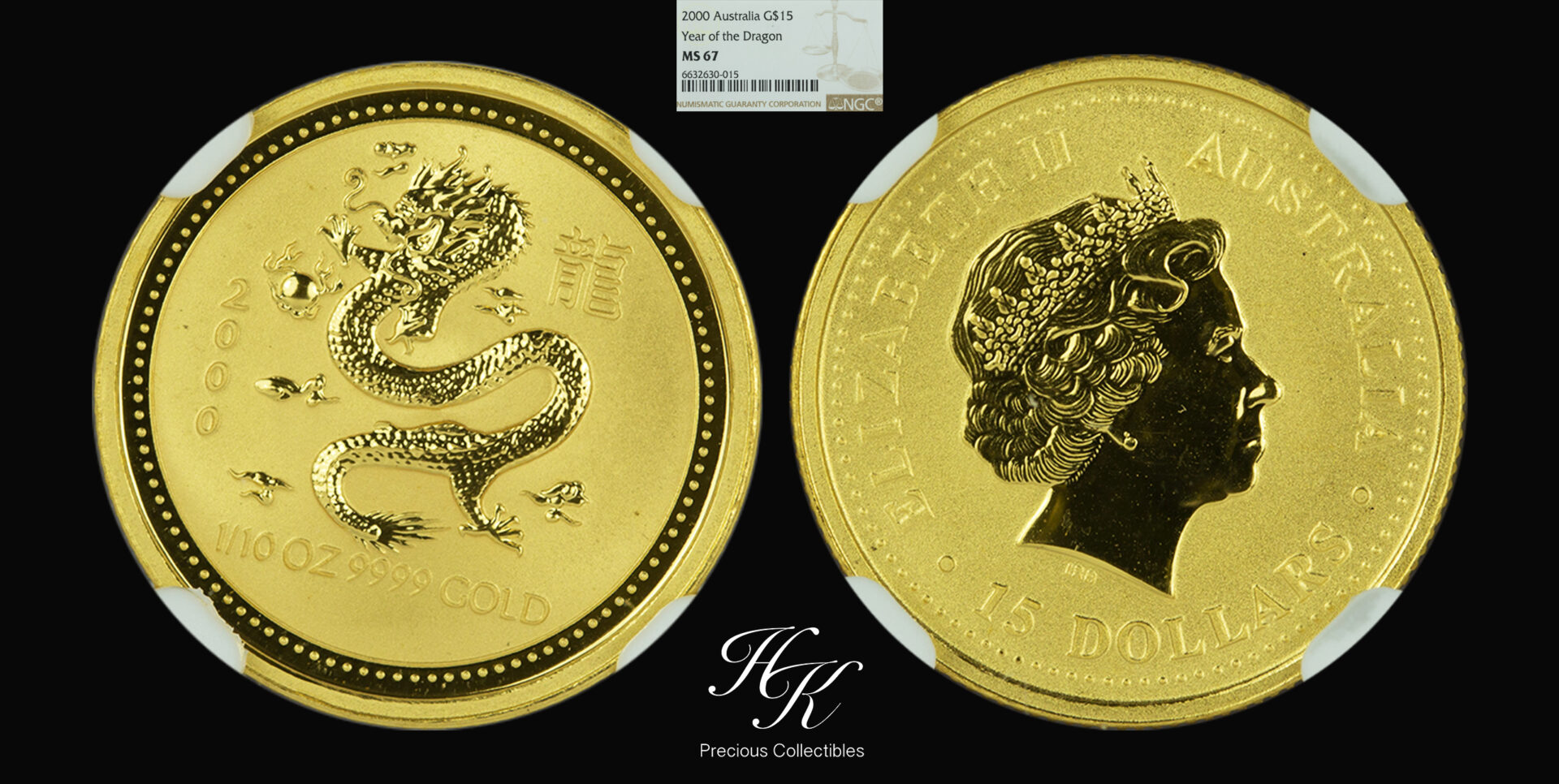 Gold 15 dollars 2000 NGC MS67 “Year of the Dragon” Australia