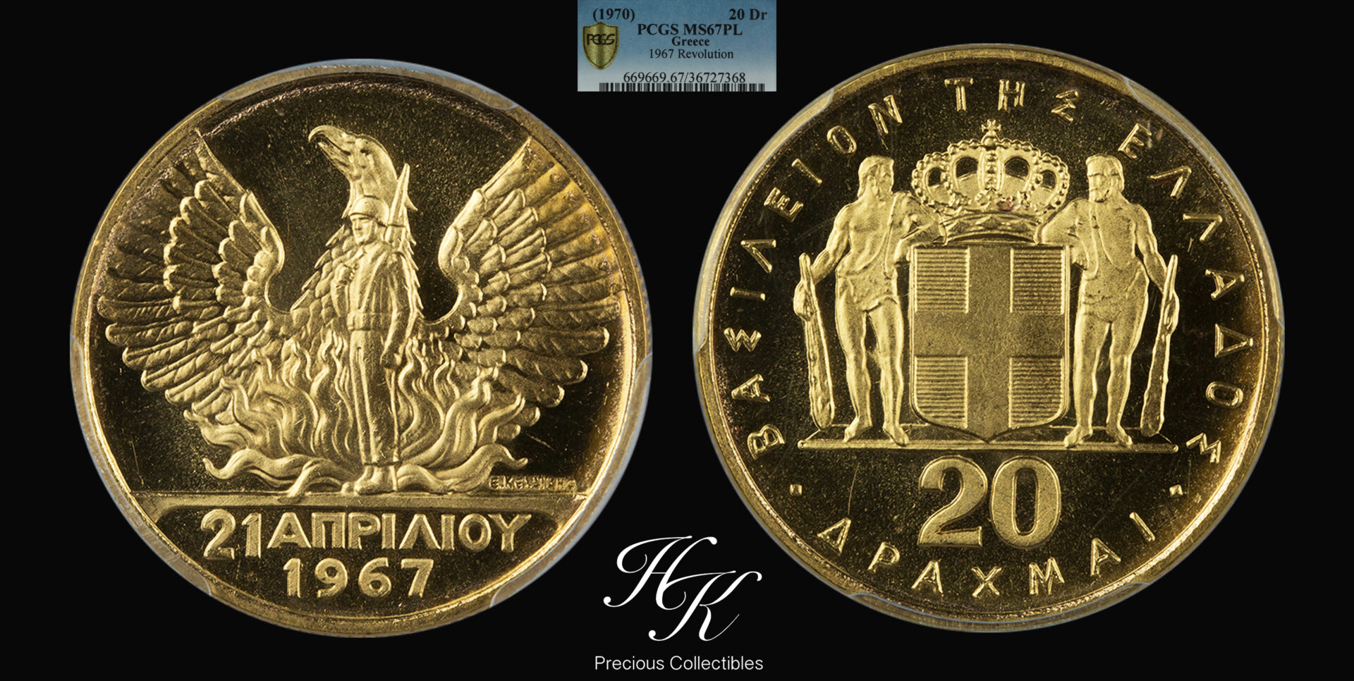 GOLD 20 drachmai 1967 (1970) PCGS MS67 PL Greece