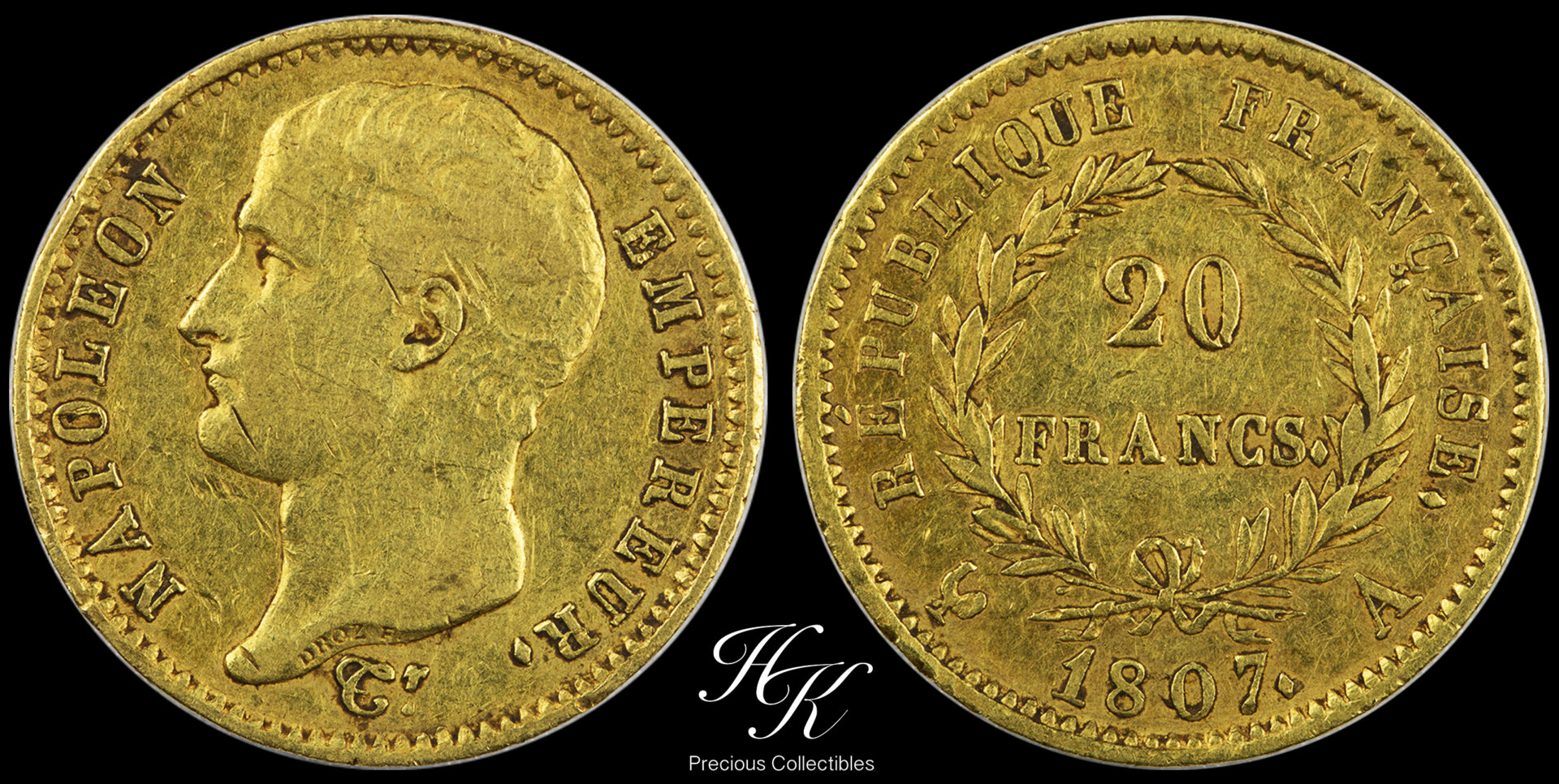 Gold 20 Francs – Napoleon I – 1807 A France Categories: All Coins, Gold Coins Additional information Additional information Country France Nominal 20 Francs Year 1807 Quality VF
