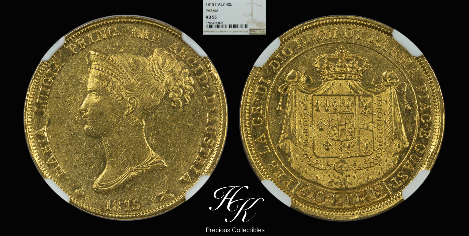 Gold 40 Lire 1815 “Maria Luigia” Parma – NGC AU55 ITALY