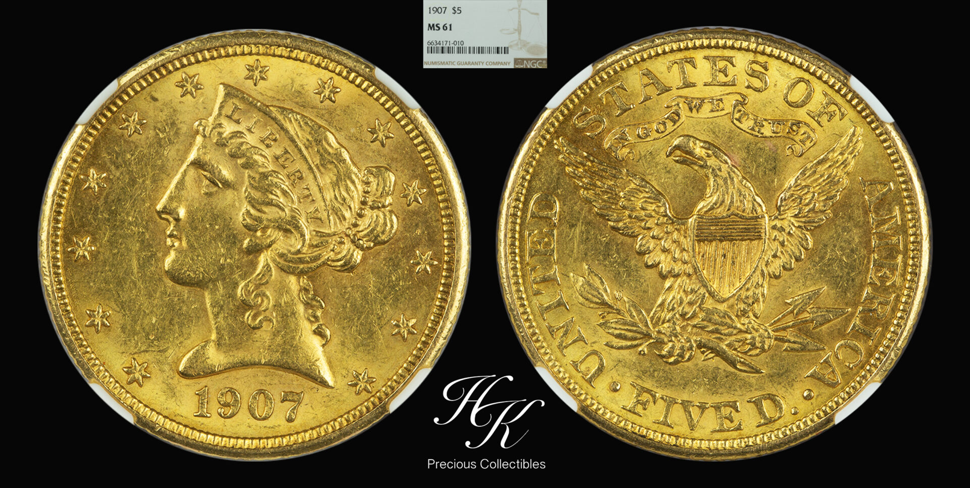 Gold 5 dollars LIBERTY 1907 NGC MS61 USA