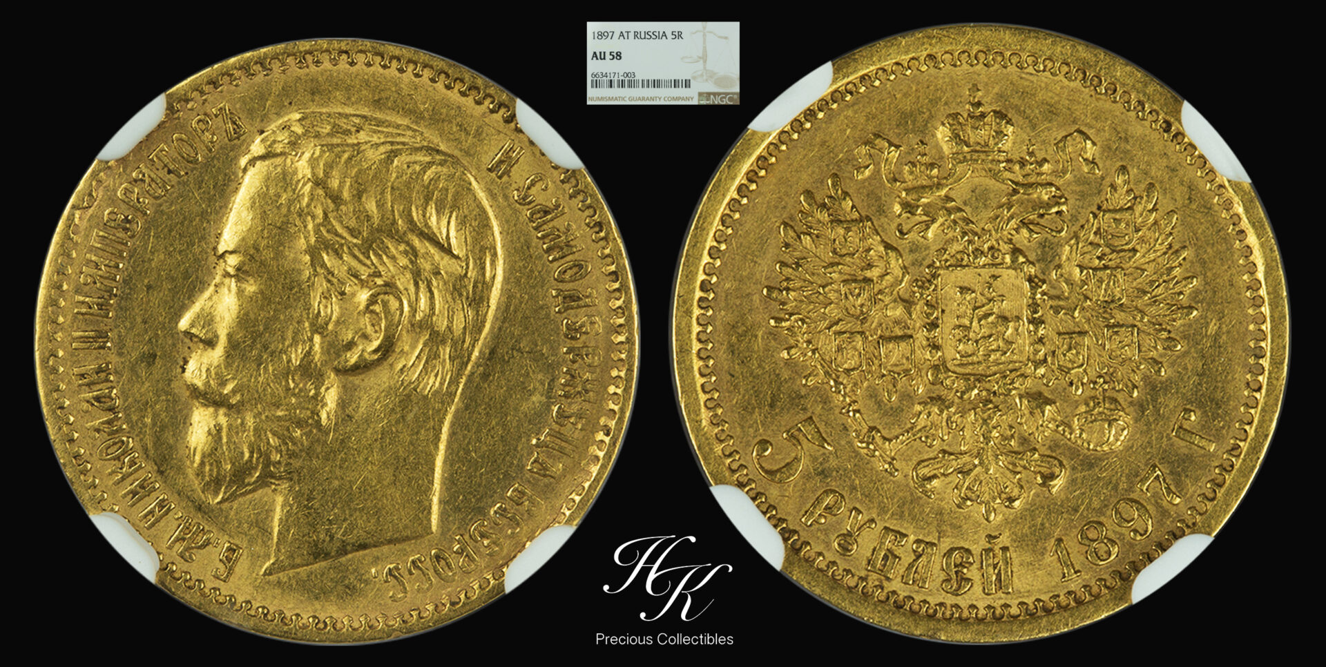 Gold 5 Rubles (ROUBLES) 1897 NGC AU58 – Nikolai II- Russia