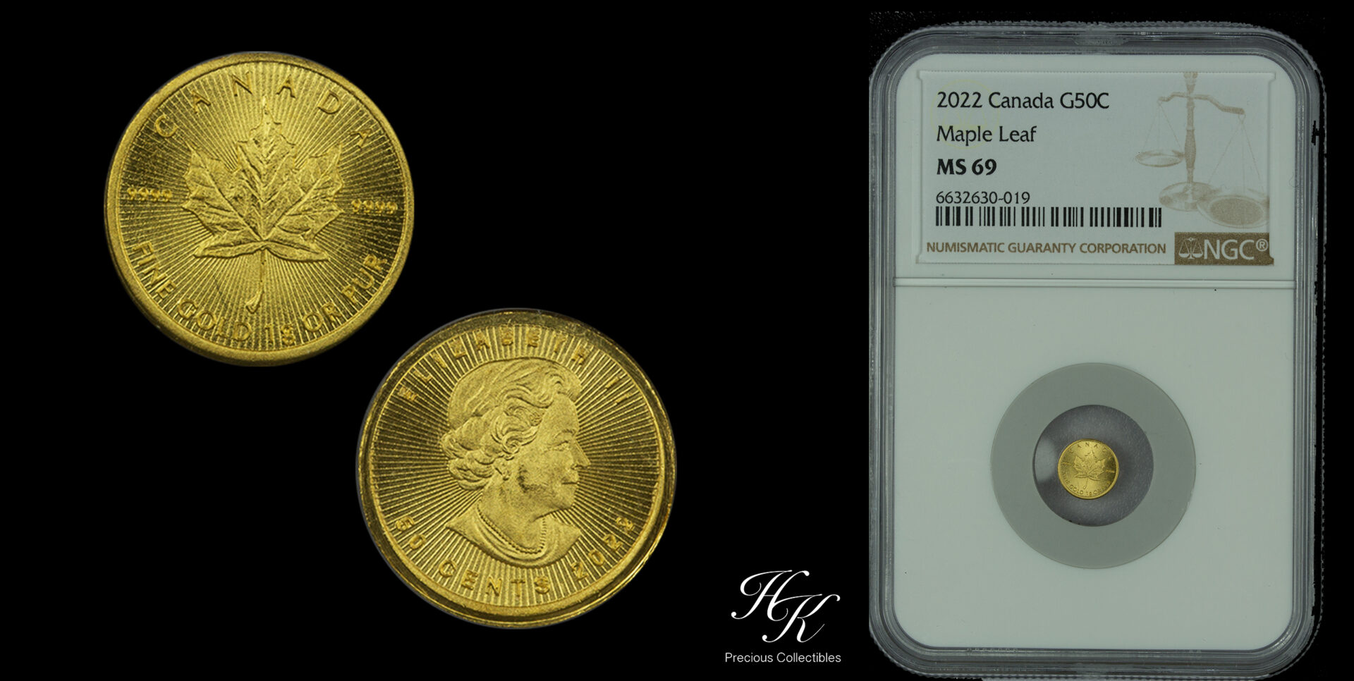 Gold 50 Cents – Elizabeth II- maple leaf 2022 NGC MS69 Canada Categories: All Coins, Bullion, Gold Coins Description Description Gold 50 Cents – Elizabeth II- maple leaf 2022 NGC MS69 Canada 1 gr pure gold TOP GRADE