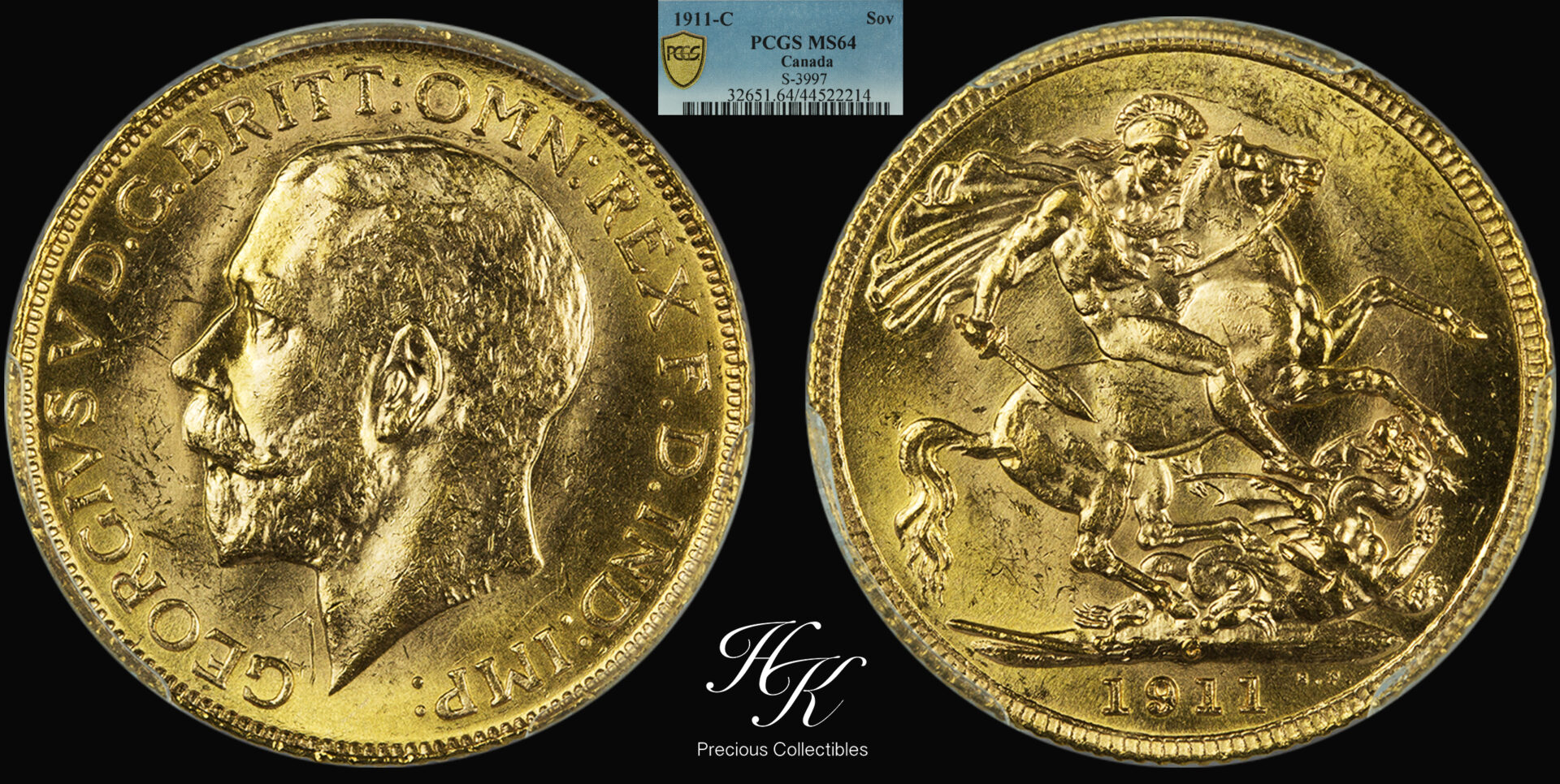 Gold “GEORGE V” sovereign 1911 C PCGS MS64 Canada