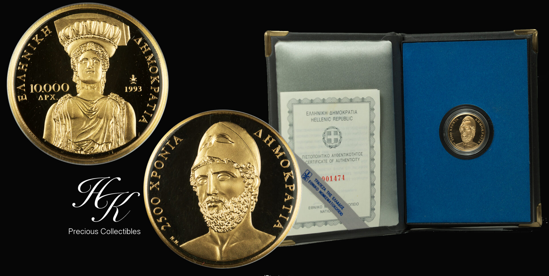 Gold proof 10000 Drachmai 1993 “Anniversary of 2500 years of Democracy ” Greece