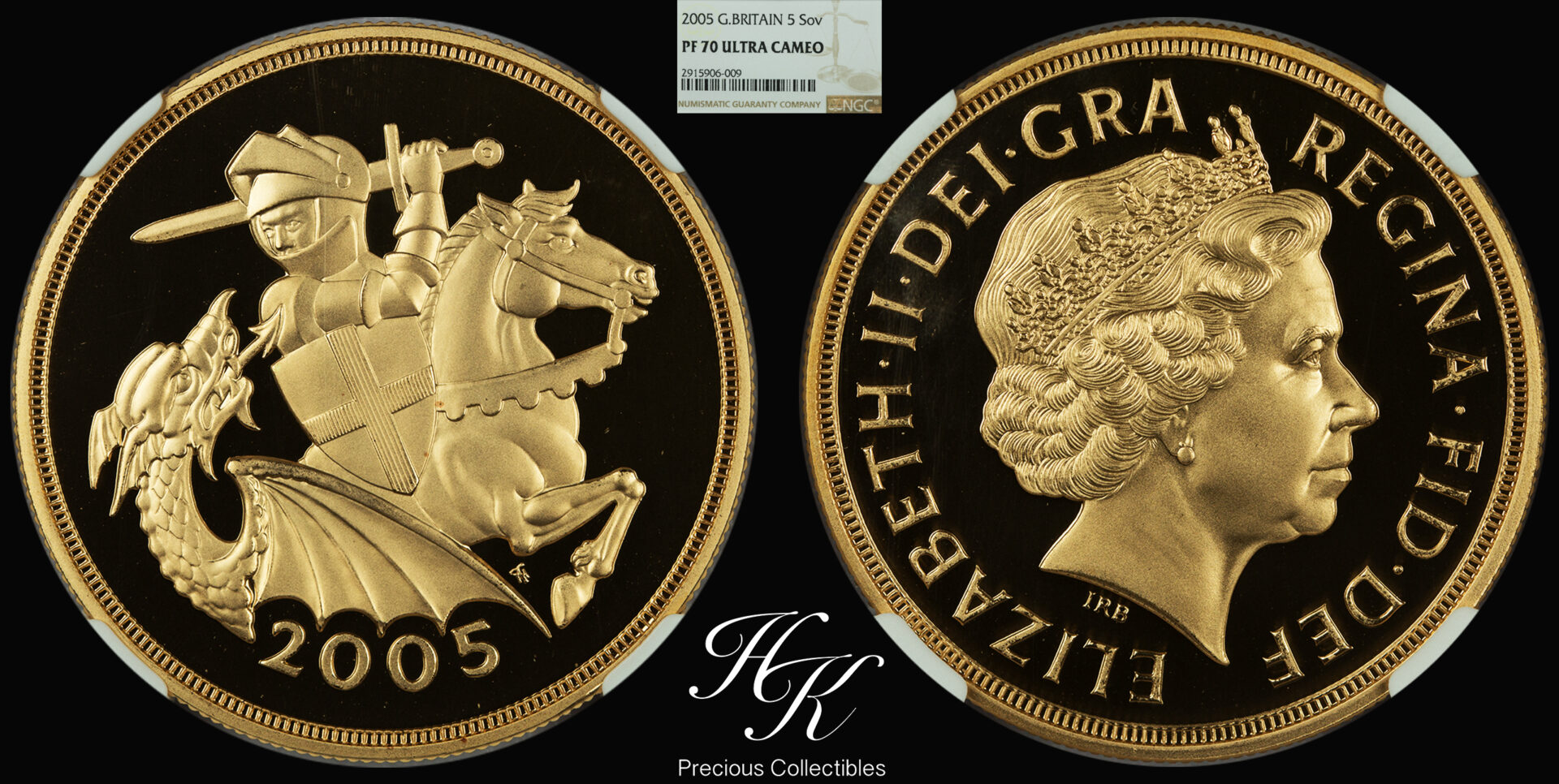 Gold Proof 5 pounds 2005 NGC PF70 ULTRA CAMEO “Elizabeth” Great Britain
