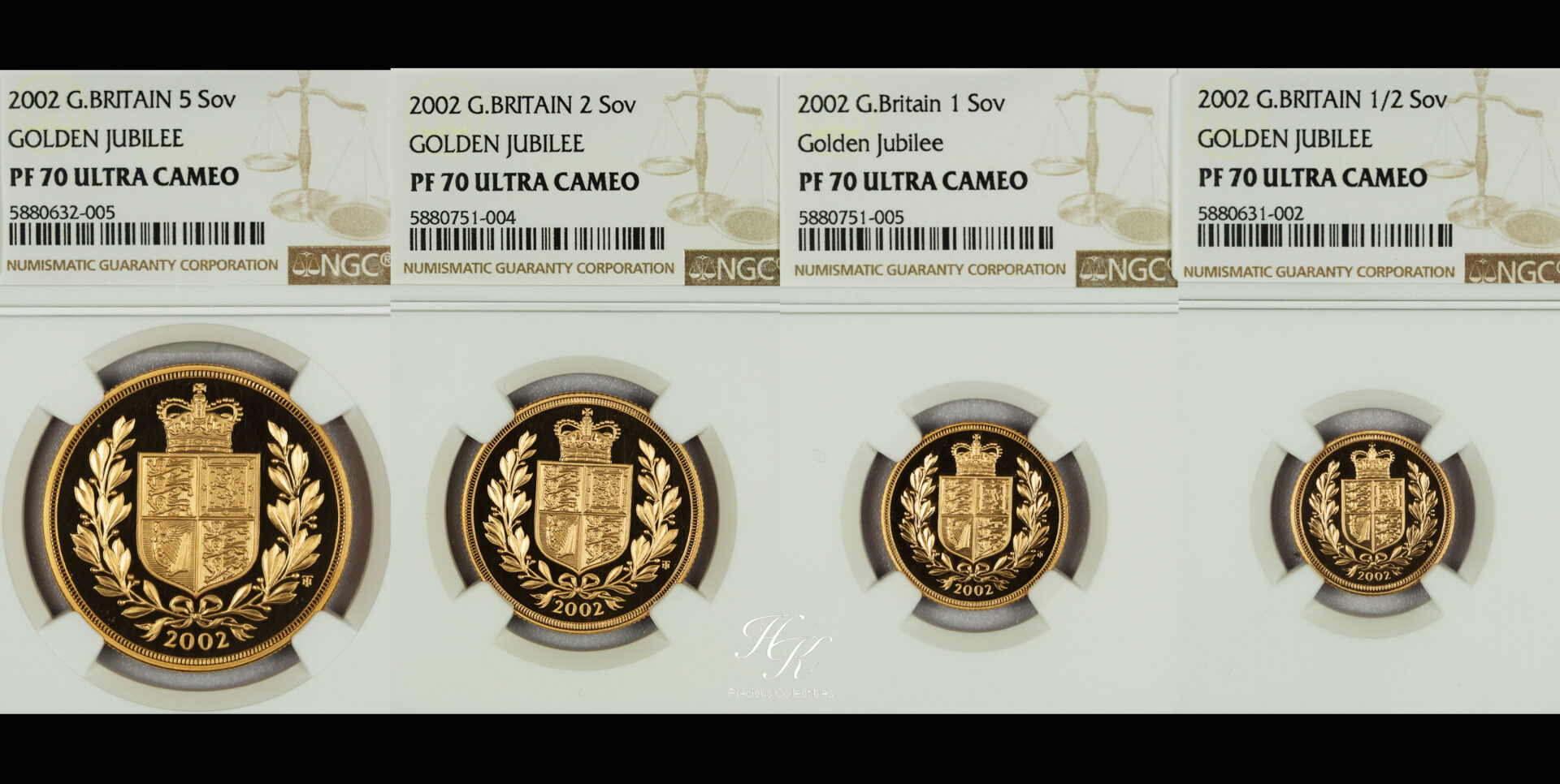 Gold proof sovereign set (4 COIN SET) 2002 “Elizabeth – Shield special design” NGC PF70 ULTRA CAMEO Great Britain